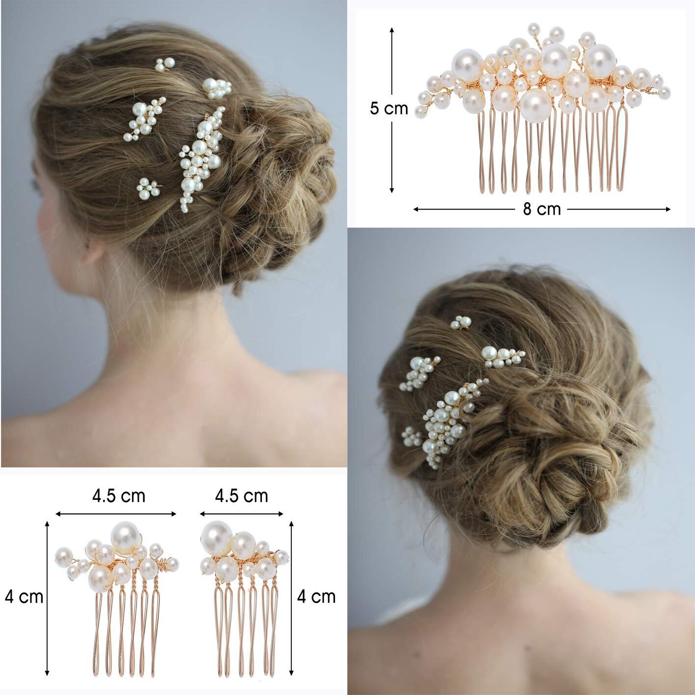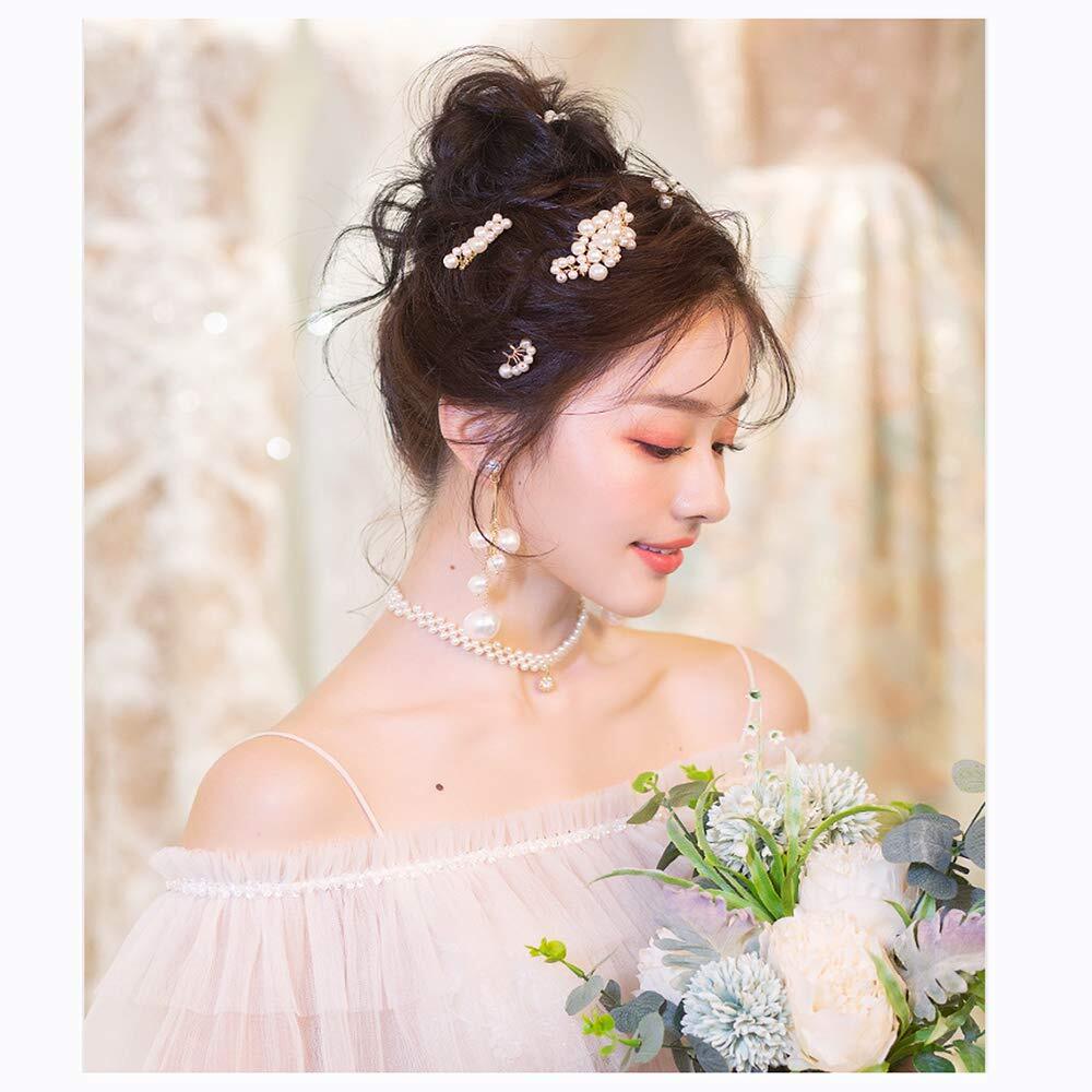「セット」 大きいパールヘアアクセサリー*1、小さいパールヘアアクセサリー*2、パールヘアピン*2。大きいヘアアクセサリー:8* 5cm、小さいヘアアクセサリー:4.5*4cm/2.5*4cm、ヘアピン:1.5*7.5cm/1.5*7cm。