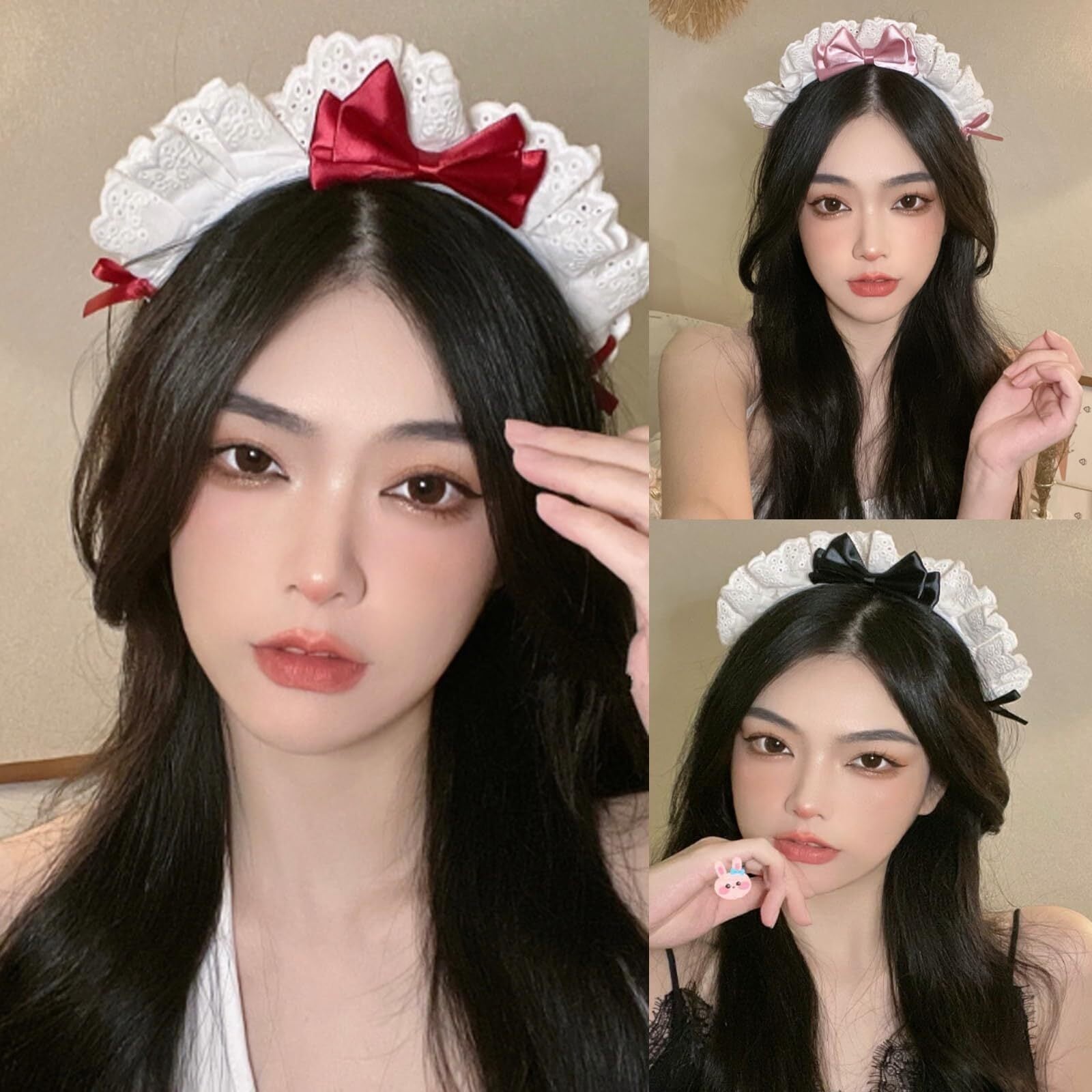 [HAPVITAL] チャーム ロリータ 髪飾り リボン付き ヘアアクセサリー レースフリル カチューシャコスプレ系 萌え系 lolita お人形 蝶結び ヘアクリップ付き かわいい キュート メイドカフェ