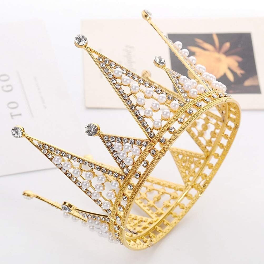 この豪華な花嫁のティアラは、上品な輝きを放つ真珠とラインストーンが施されたゴールドの王冠です。結婚式やパーティーなどの特別な日に、あなたを最高に美しく輝かせてくれるでしょう。ティアラの先端は細工の施された三角形の形状になっており、真珠とラインストーンが華やかに装飾されています。ティアラの縁にはラインストーンが一周施され、さらに上品な雰囲気を醸し出しています。ウェディングドレスやパーティードレスに合わせて、あなたをまばゆい女神のように輝かせてくれるアクセサリーです。特別な思い出に残る一品をぜひお手元に。