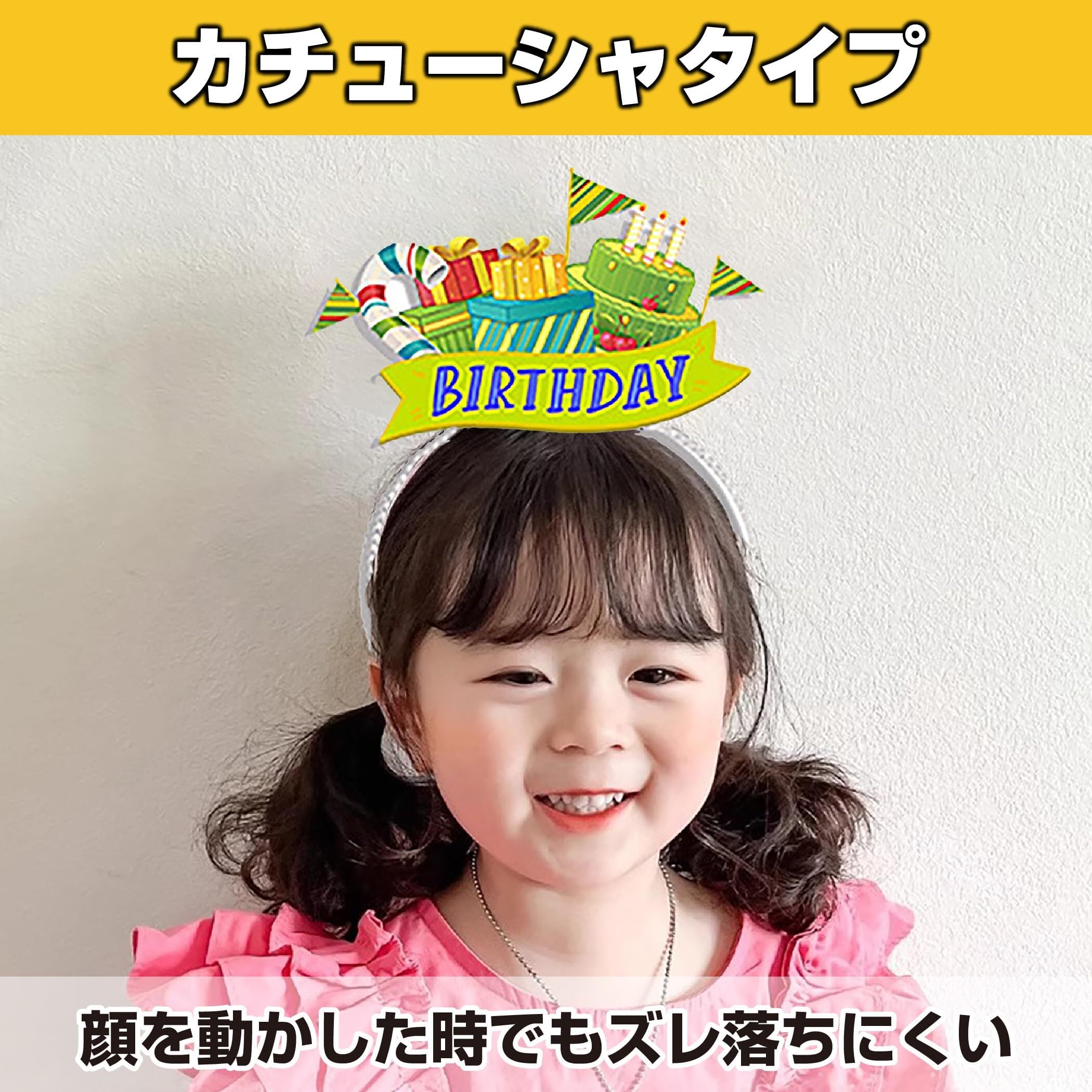 顔を動かした時でもズレ落ちにくい:カチューシャタイプのパーティーグッズですので、顔を動かした時でもズレ落ちにくいです。大切な家族や友達の誕生日をみんなでお祝いしたい時に、ぜひ活用してみてください。