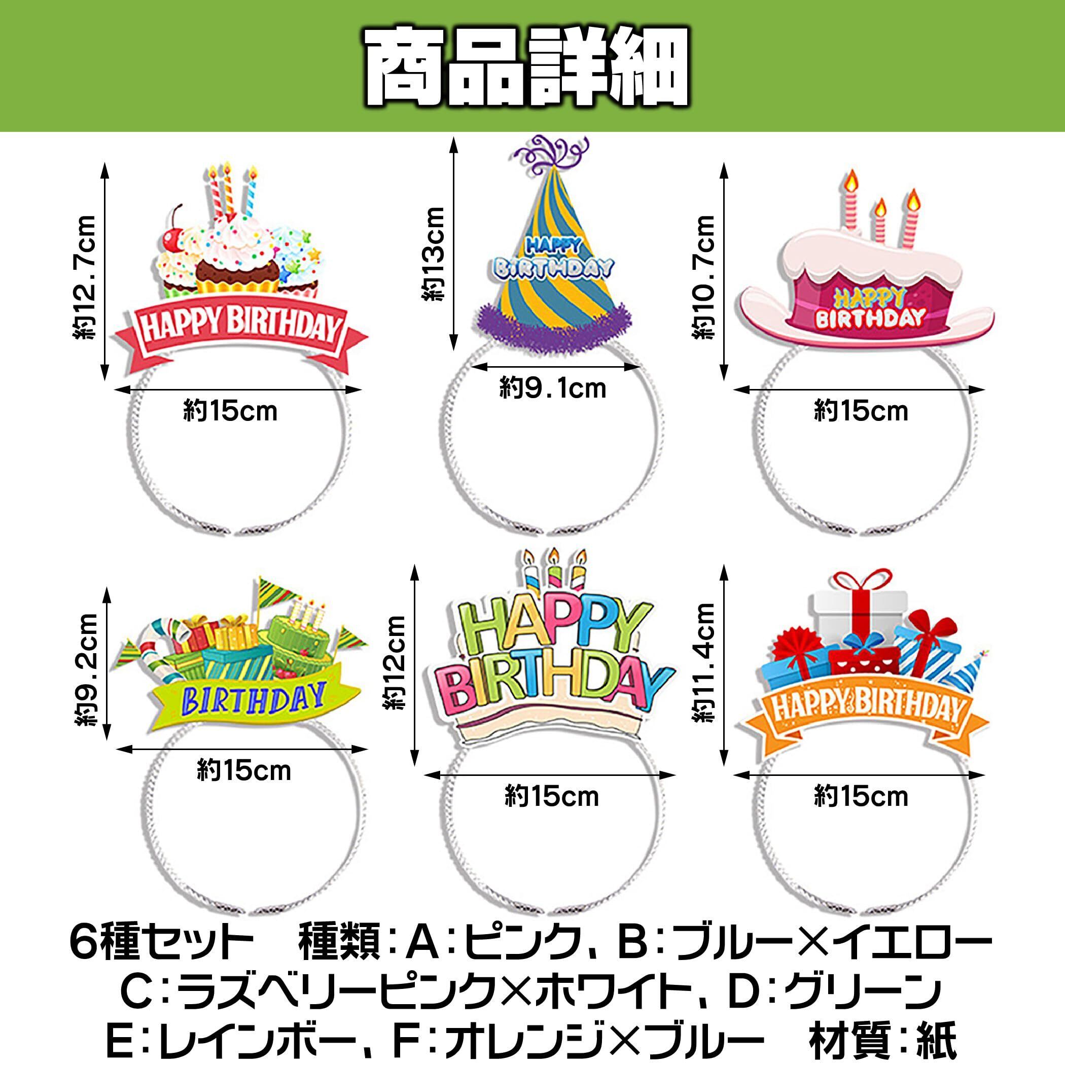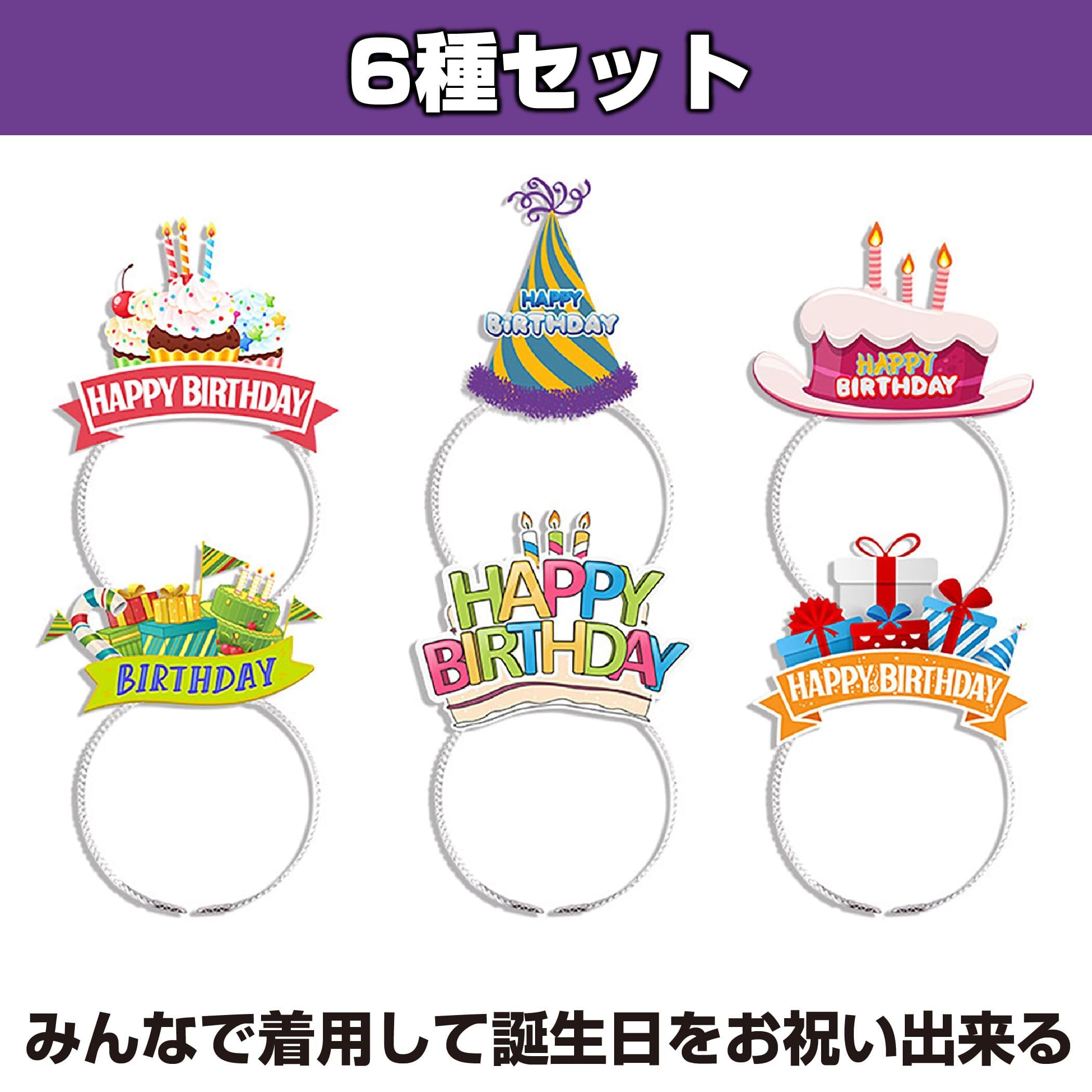 [Felimoa] バースデーカチューシャ 誕生日 お祝い パーティーグッズ 6種セット