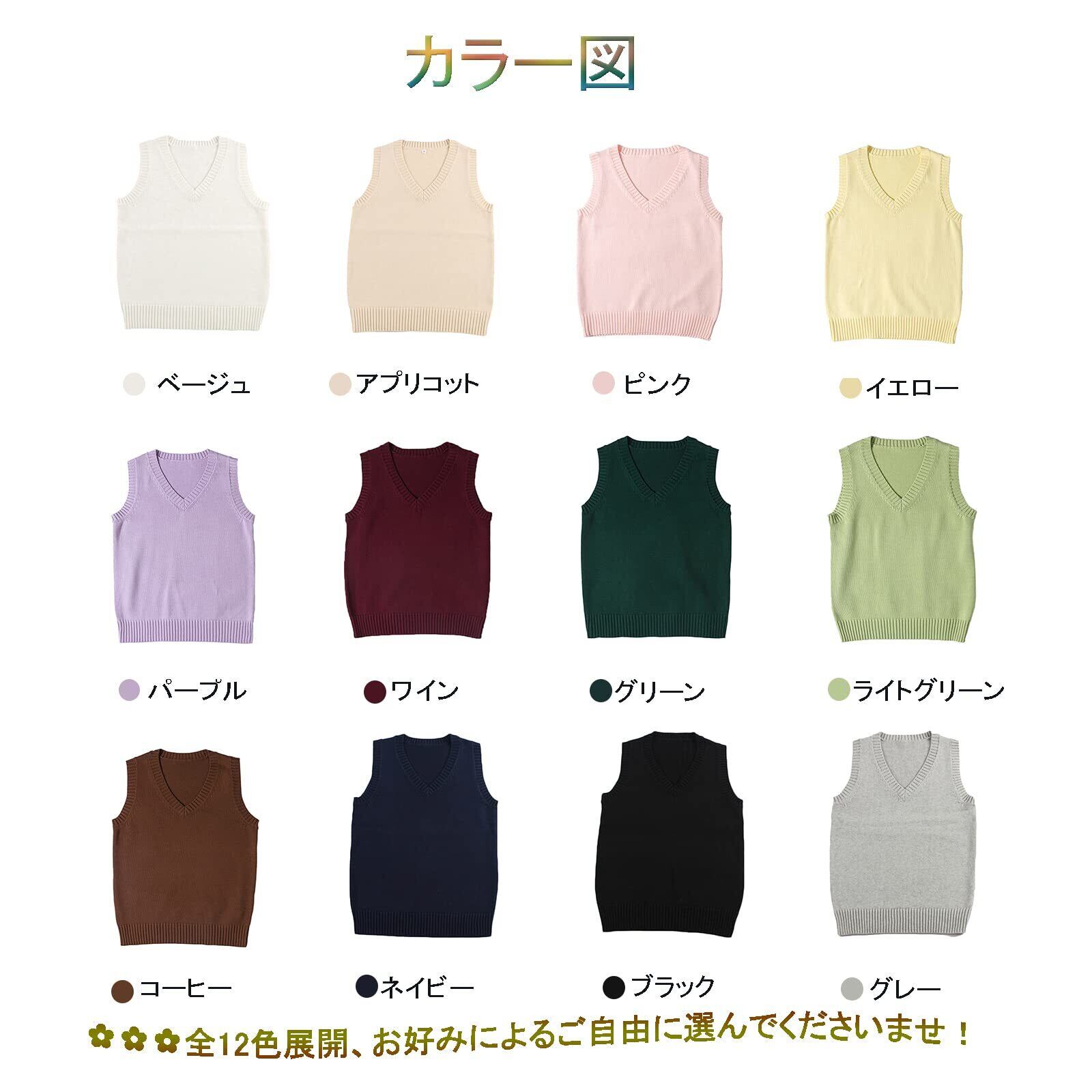 [Blostirno] スクールベスト 女子 学生 制服 ニート Vネック 通学用 無地 ゆったり