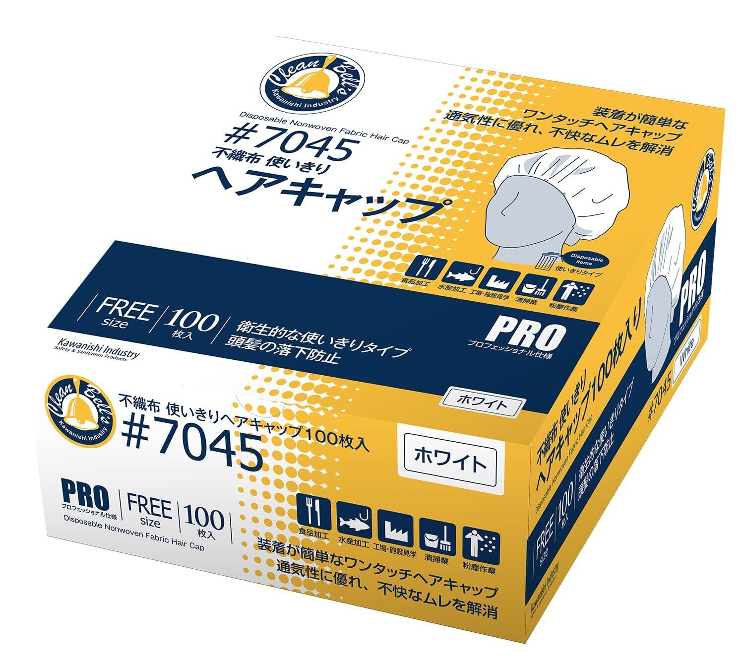 川西工業 クリーンベルズ 不織布使いきりヘアキャップ100枚入 ホワイト フリー 【使いきり】 #7045
