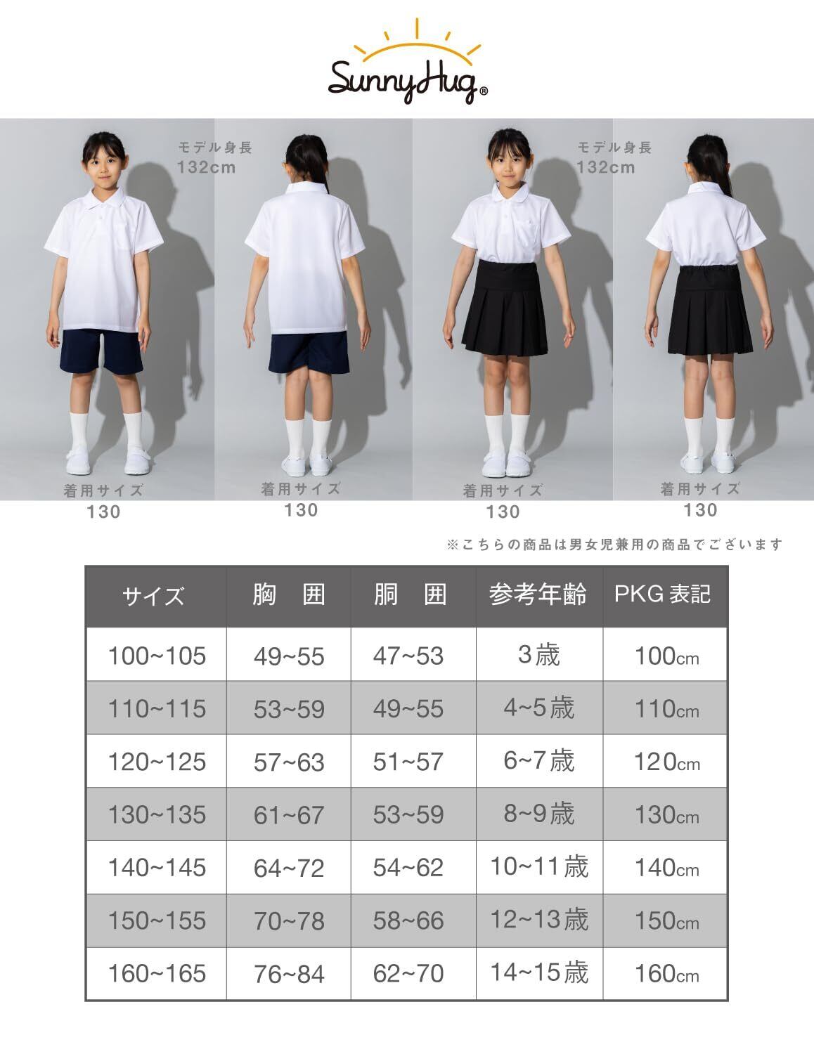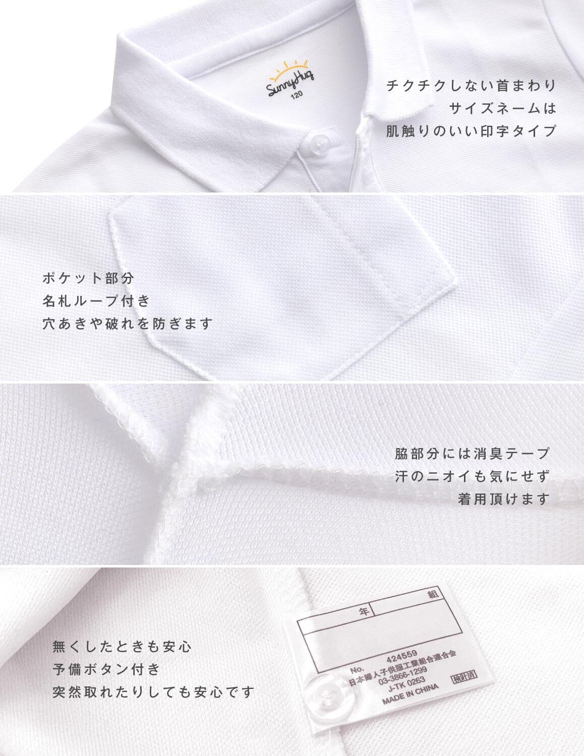 [サニーハグ] ポロシャツ 半袖 キッズ【丈夫で長持ち】 男女兼用 サラッと快適 ノーアイロン 毛玉防止 きちんとした見た目 吸汗速乾 抗菌防臭 子供 男の子 女の子 スクールポロシャツ 小学生 幼稚園 中学生 通学 冠婚葬祭 白 100-170 1P/2P