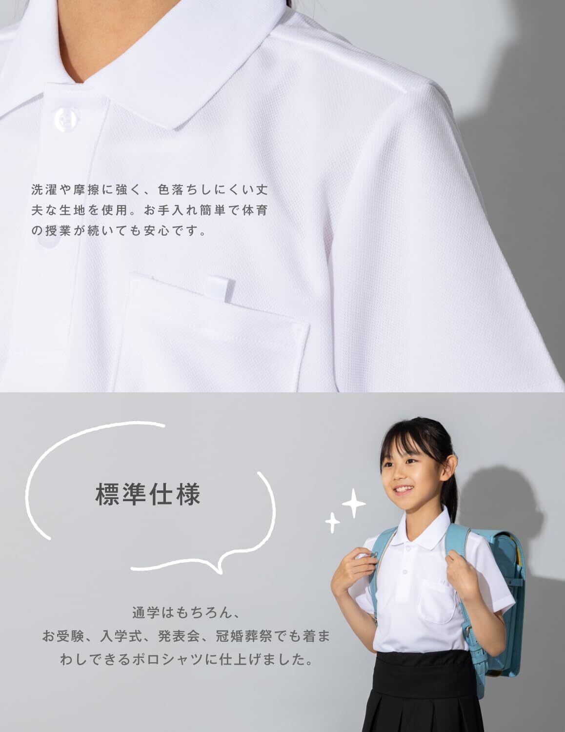 【2022最新】[サニーハグ] ポロシャツ 半袖 キッズ【丈夫で長持ち】 男女兼用 サラッと快適 ノーアイロン 毛玉防止 きちんとした見た目 吸汗速乾 抗菌防臭 子供 男の子 女の子 スクールポロシャツ 小学生 幼稚園 中学生 通学 冠婚葬祭 白 100-170 1P/2P | 無意味ステッカー