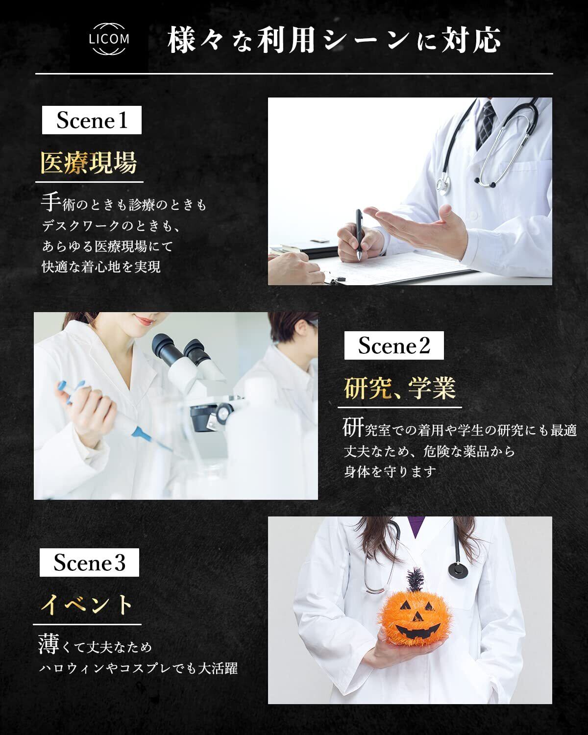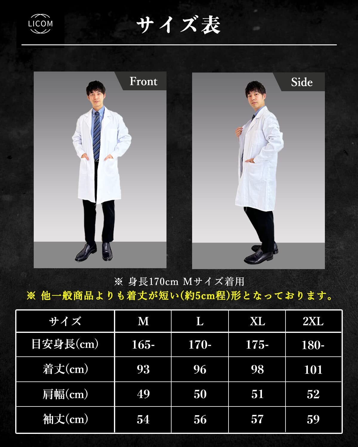 [LICOM] 【現役医師監修】 白衣PEMIUM 白衣 メンズ 男性用 診察衣 軽量 ドクターコート