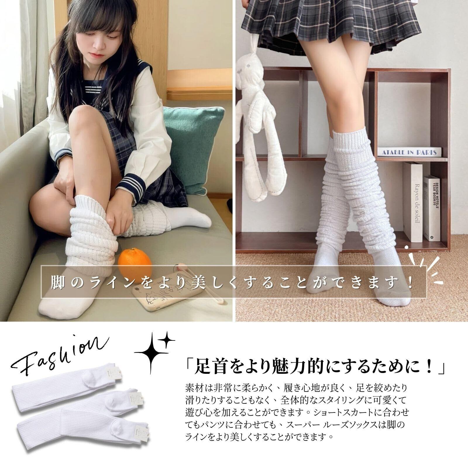 「足首をより魅力的にするために!」素材は非常に柔らかく、履き心地が良く、足を絞めたり滑りたりすることもなく、全体的なスタイリングに可愛くて遊び心を加えることができます。ショートスカートに合わせてもパンツに合わせても、スーパー ルーズソックスは脚のラインをより美しくすることができます。
