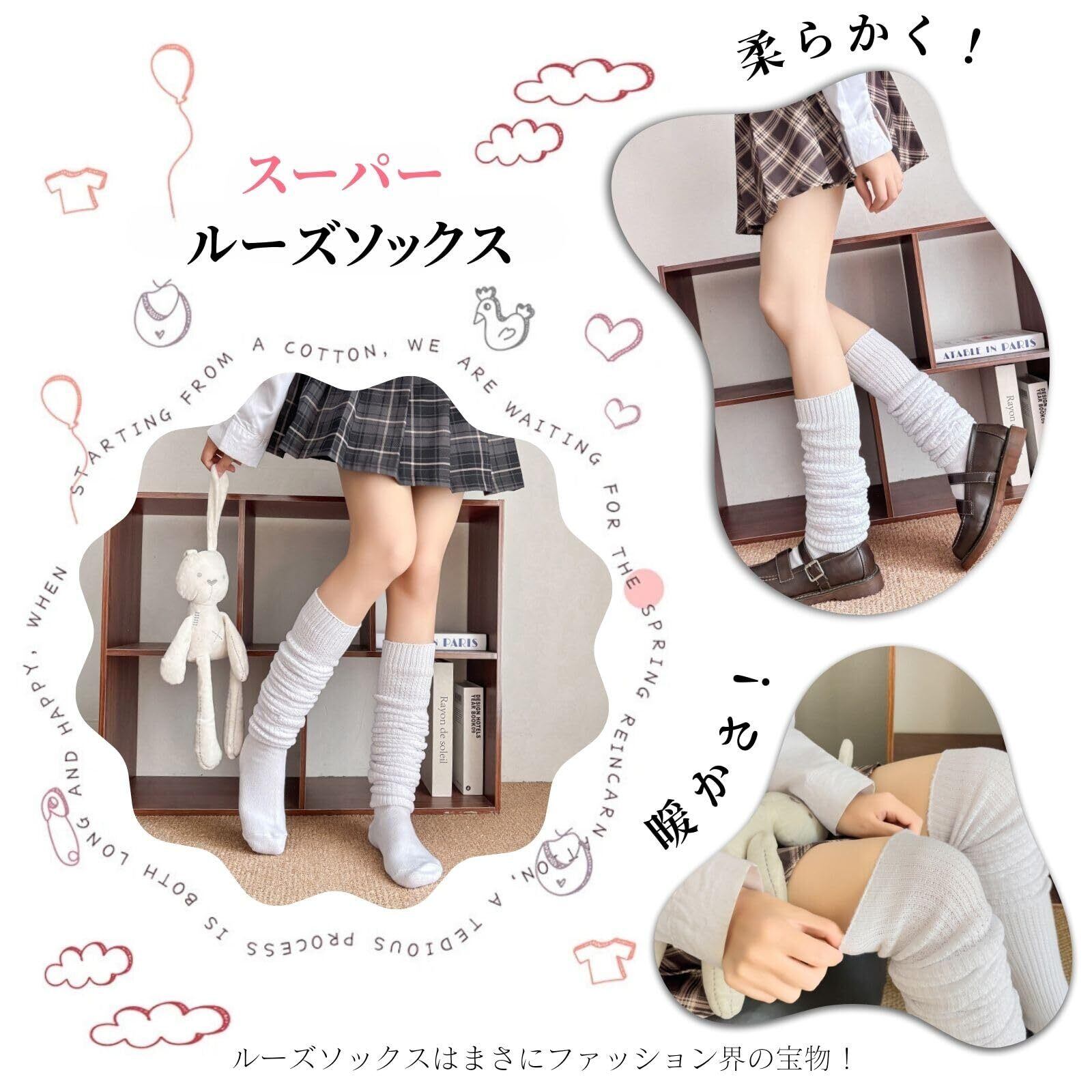 [VmanKu] スーパー ルーズソックス スクールソックス スクール ハイソックス80cm 100cm 120cm 白 制服 学生服 ソックス 靴下 学生服 中学生 高校生 学生 女子 通学 文化祭 テーマパーク