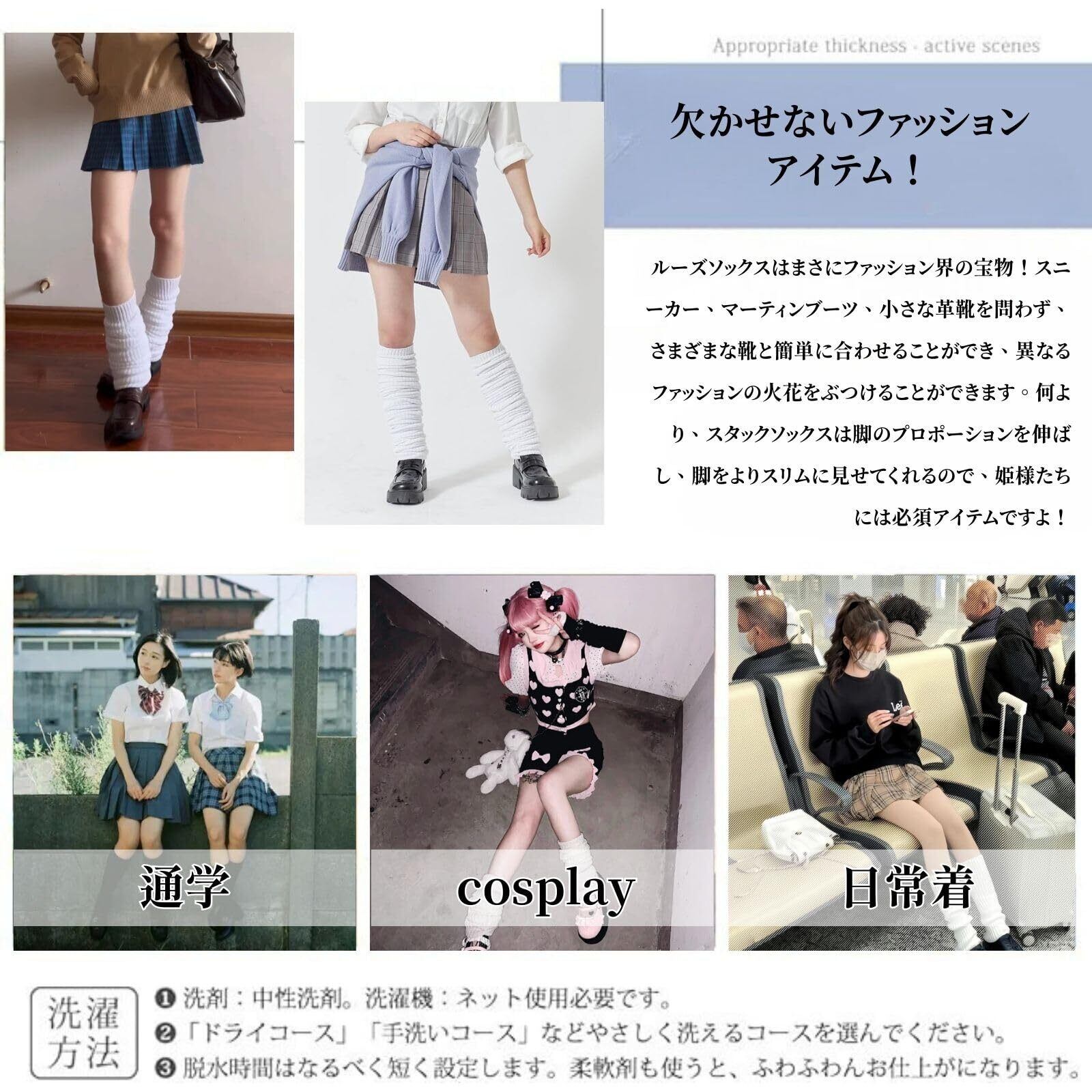 「かわいいルーズソックス!」サイズさえ合えば、女の子から子供、大人まで気軽に使うことができます。締め付けすぎず伸縮性のある素材です。フィットサイズ:身長:140CM~170CM。元気いっぱいで明るくて可愛い雰囲気があり、普通のミニスカートや制服のほか、コスプレやパーティーなど、どんなシーンでも大活躍間違いなしです!