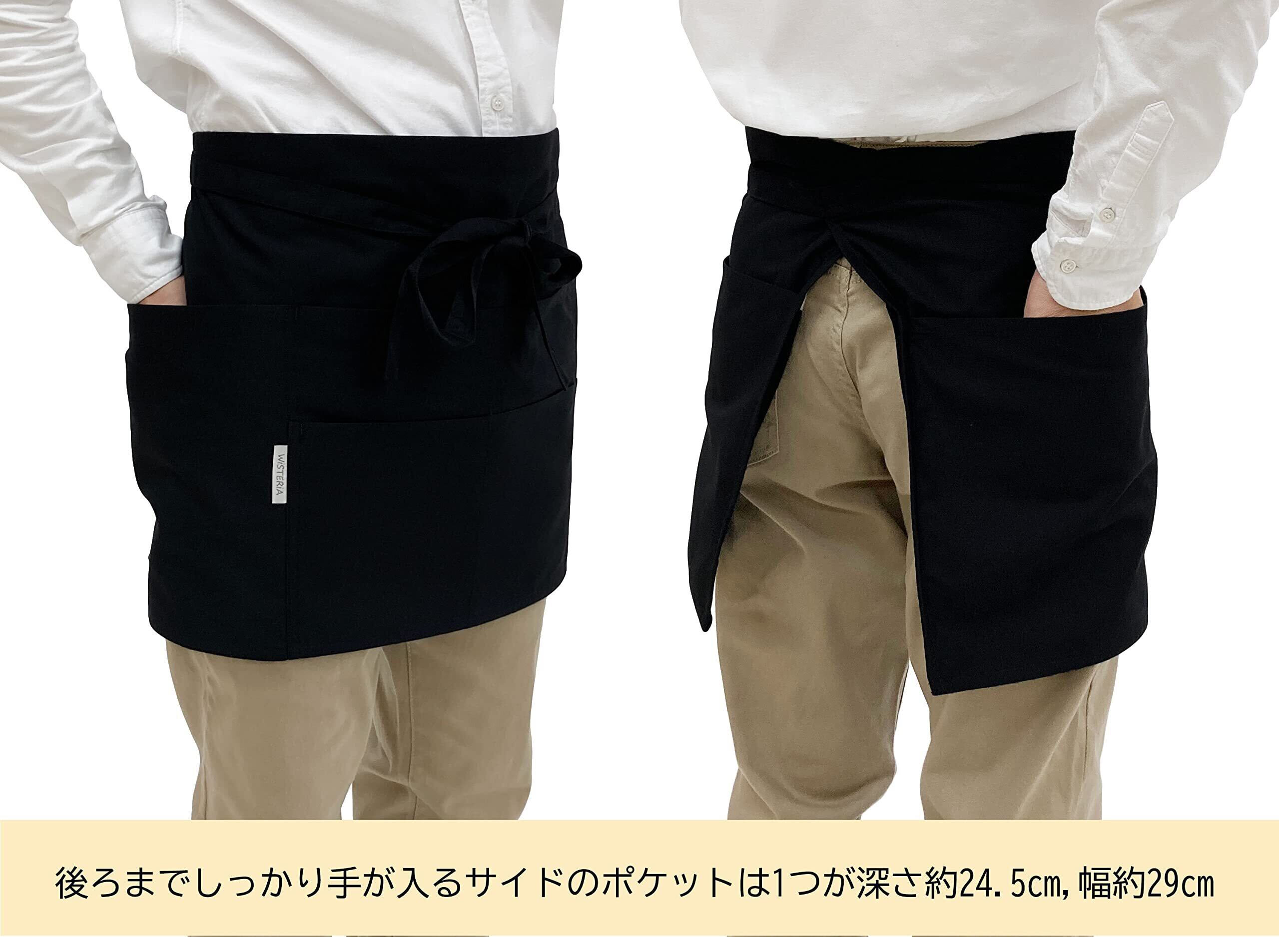 [トーマセンイ] エプロン ショート丈 綿混 腰前掛けタイプ フリーサイズ 102 (ブラックA)