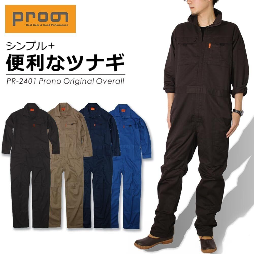 [プロノ] オリジナル 綿混ツナギ PR-2401 つなぎ オーバーオール オールインワン メンズ 作業服 作業着 メカニック 整備 車 バイク 農業 畑 DIY ツナギ