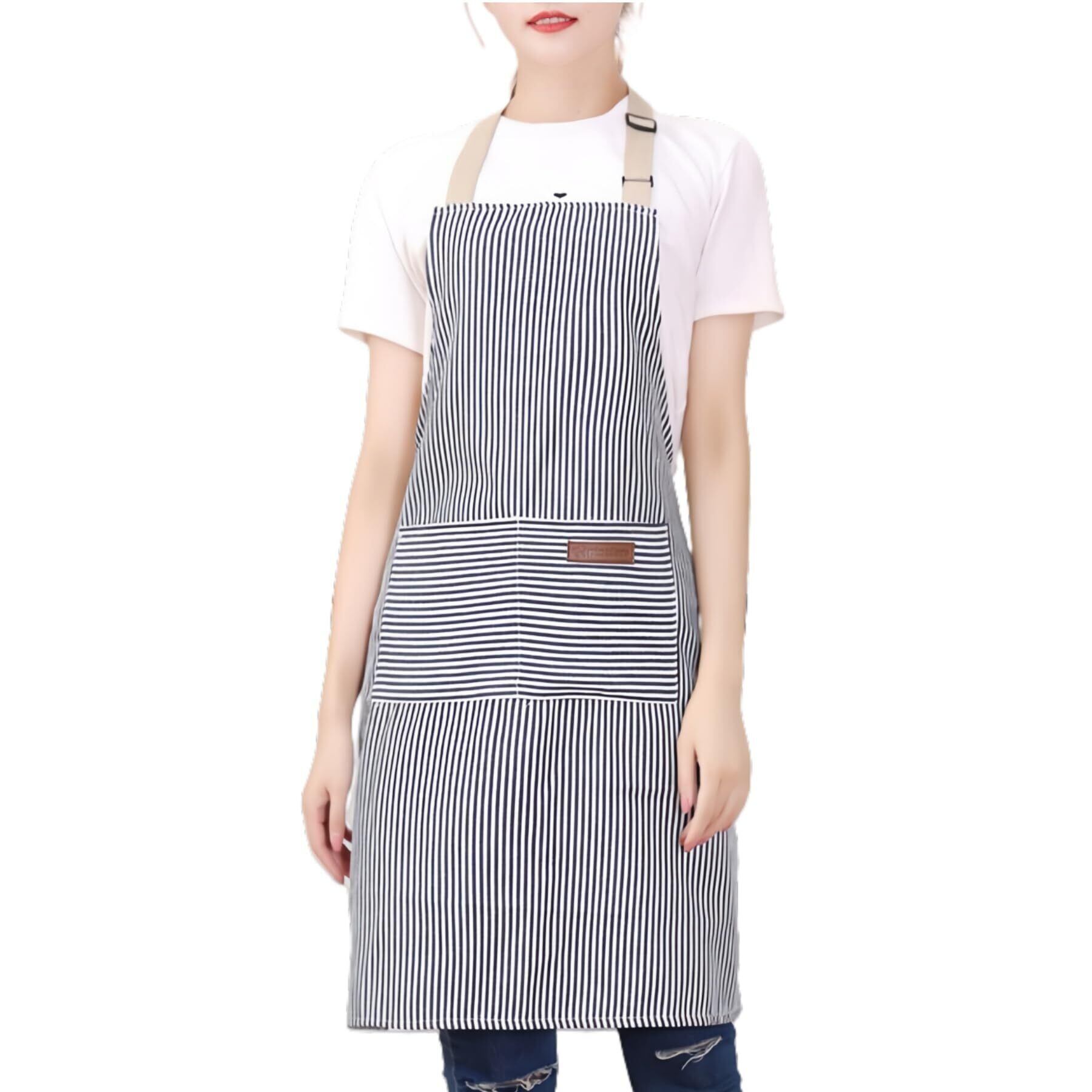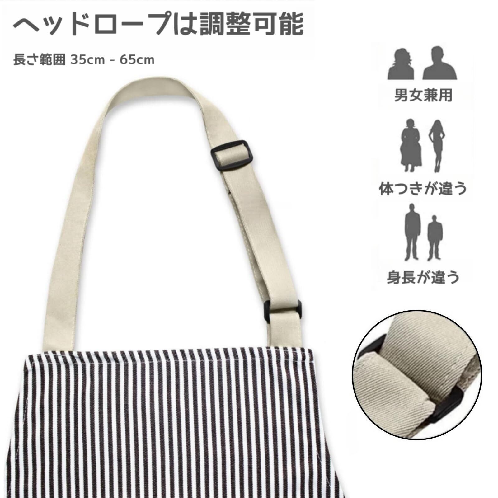 [Thougthings] エプロン レディース メンズ 首掛け 調節可能 ストライプ シンプル おしゃれ 大きいサイズ 防汚 防しわ 家事用 料理用 業務用 作業用 男女兼用