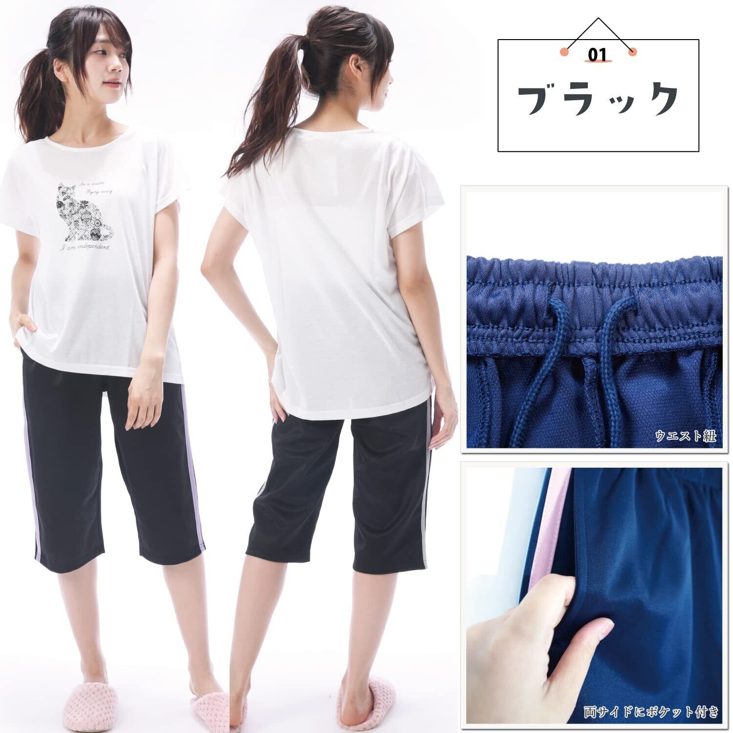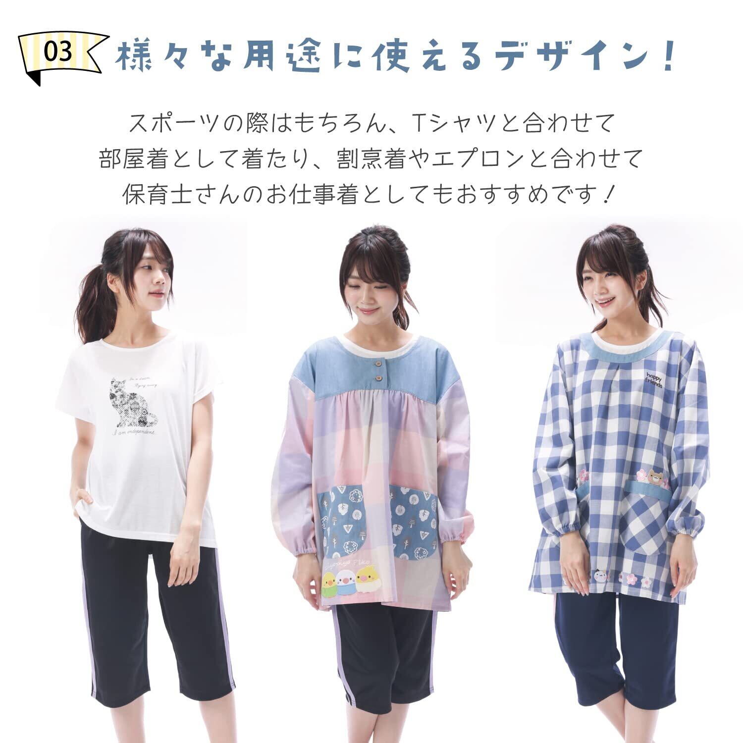 【様々な用途に使えるデザイン!】スポーツの際はもちろん、Tシャツと合わせて部屋着としたり、割烹着やエプロンと合わせて保育士さんのお仕事着としてもおすすめです!ウエストは紐で調節可能です。両サイドに便利なポケット付き。