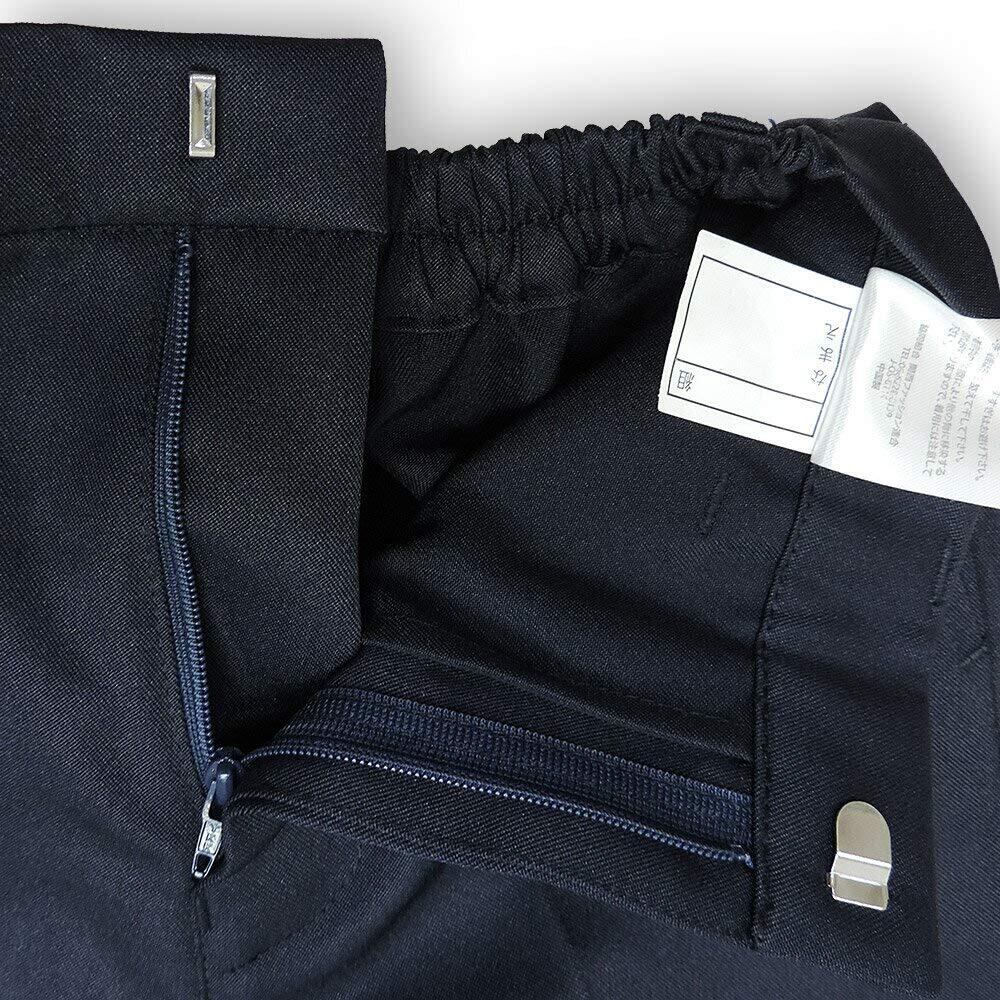 ●背中側のみ平ゴムが入っています(アジャスターゴムなし)。鍵ホック開き前ファスナー、ベルトループ、両脇&後ろポケット付き。