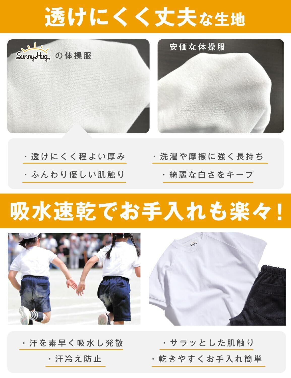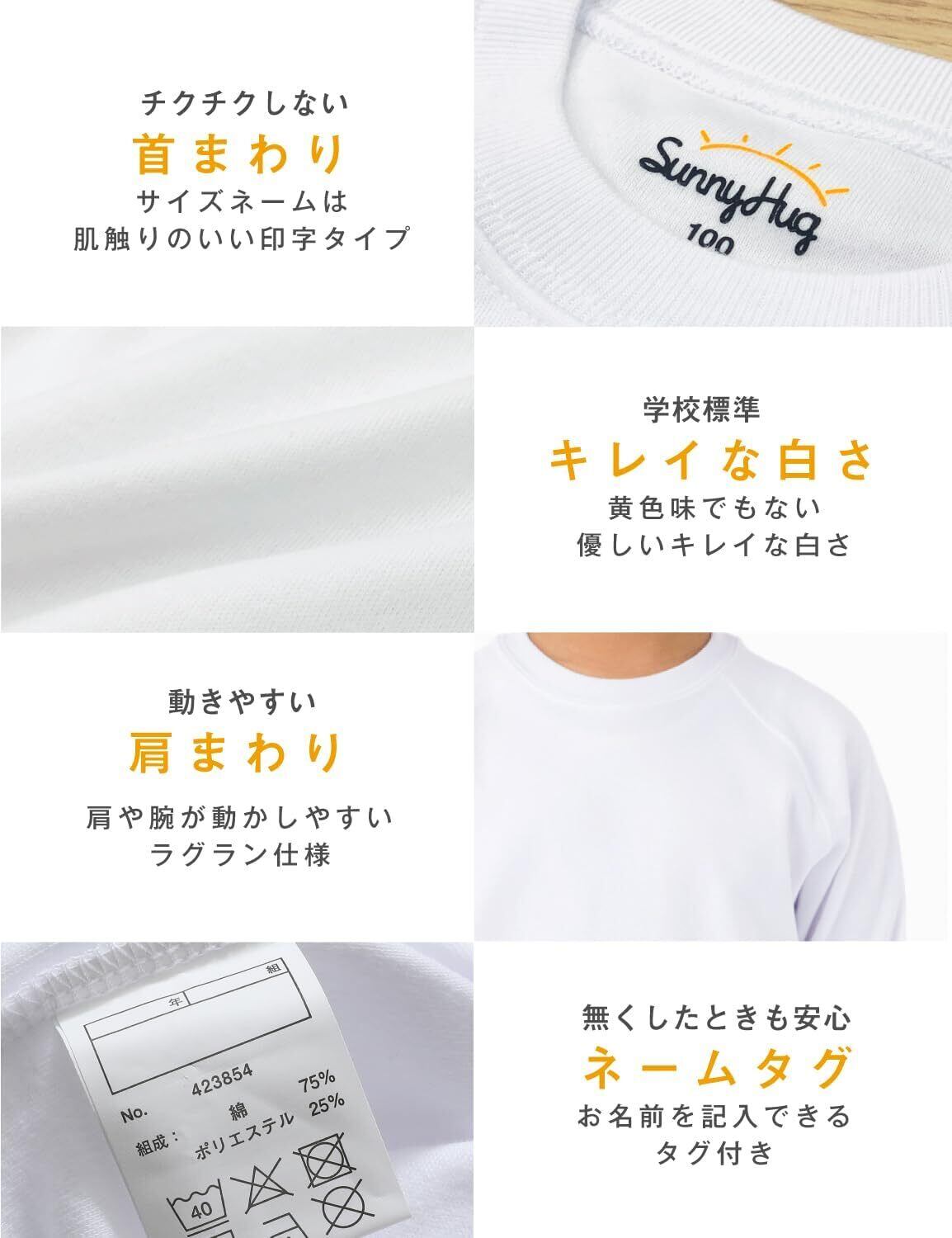[サニーハグ] 体操服【教育アドバイザー推奨】 長袖 学校標準 男女児兼用 透けにくい 乾きやすい 高耐久 綿高混 スクール 幼稚園 小学生 中学生