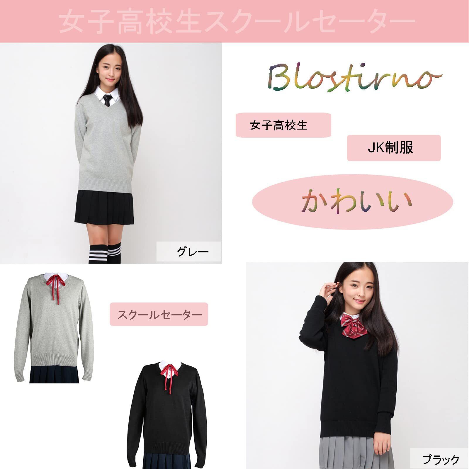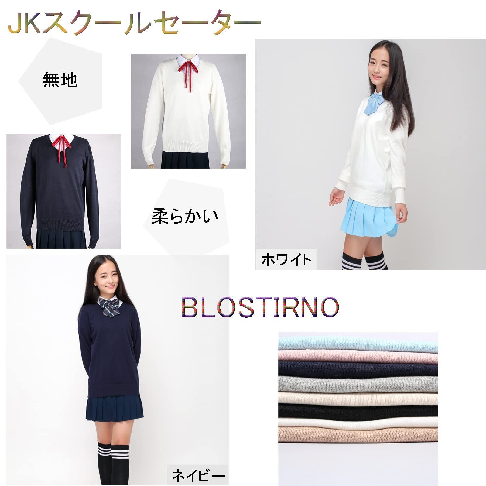 [Blostirno] スクールセーター 女子 Vネック セーター 制服 学生 無地 綿 女子高校生