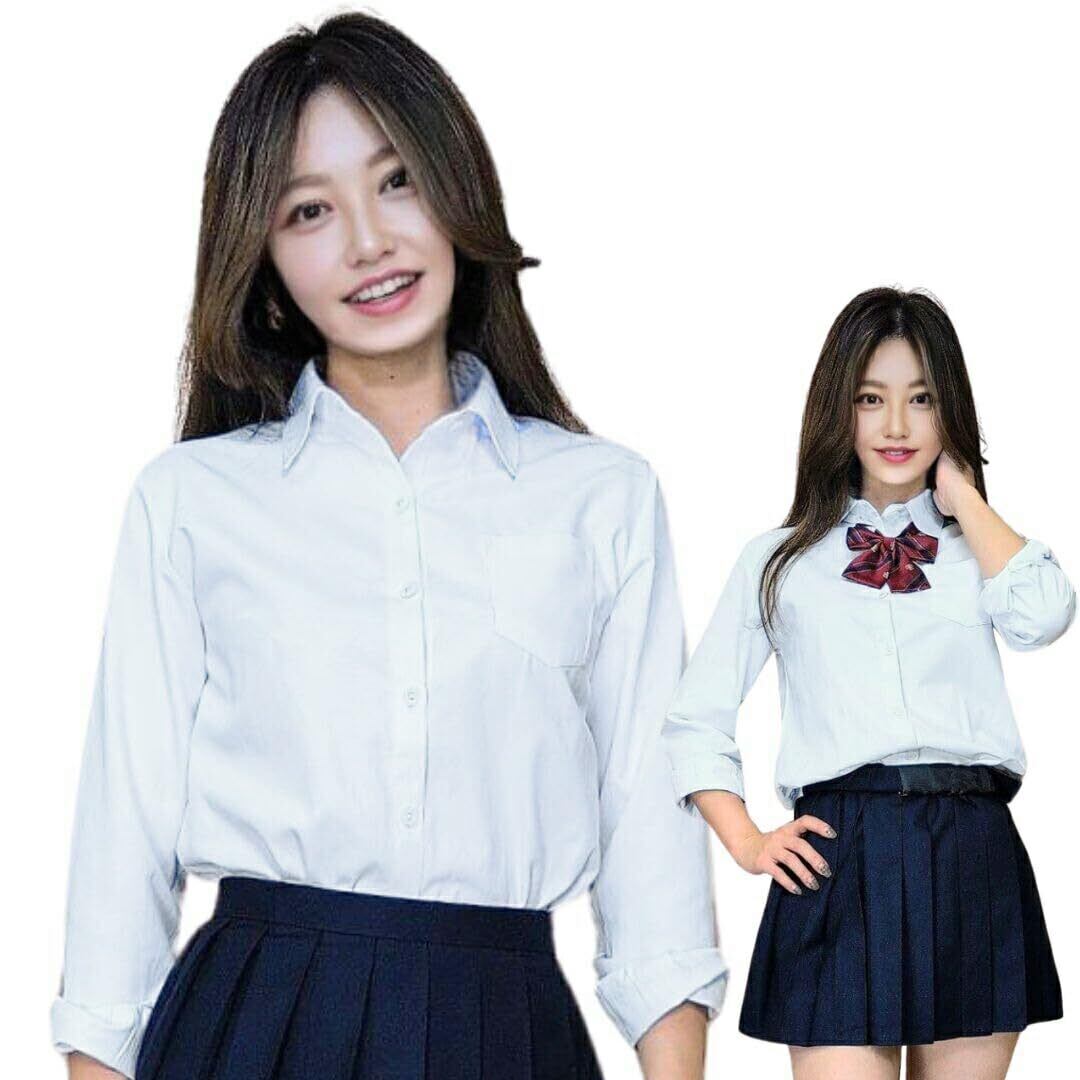 [BeLoved] 女子スクールシャツ 【 長袖/半袖 学生服 トップス ポケット付 JK 女子高生 高校生 中学生 制服 スカ―ト スクールシャツ 学校 学生 服 大人用 ギャル 女性 用 レディース 人気 白 大きいサイズ
