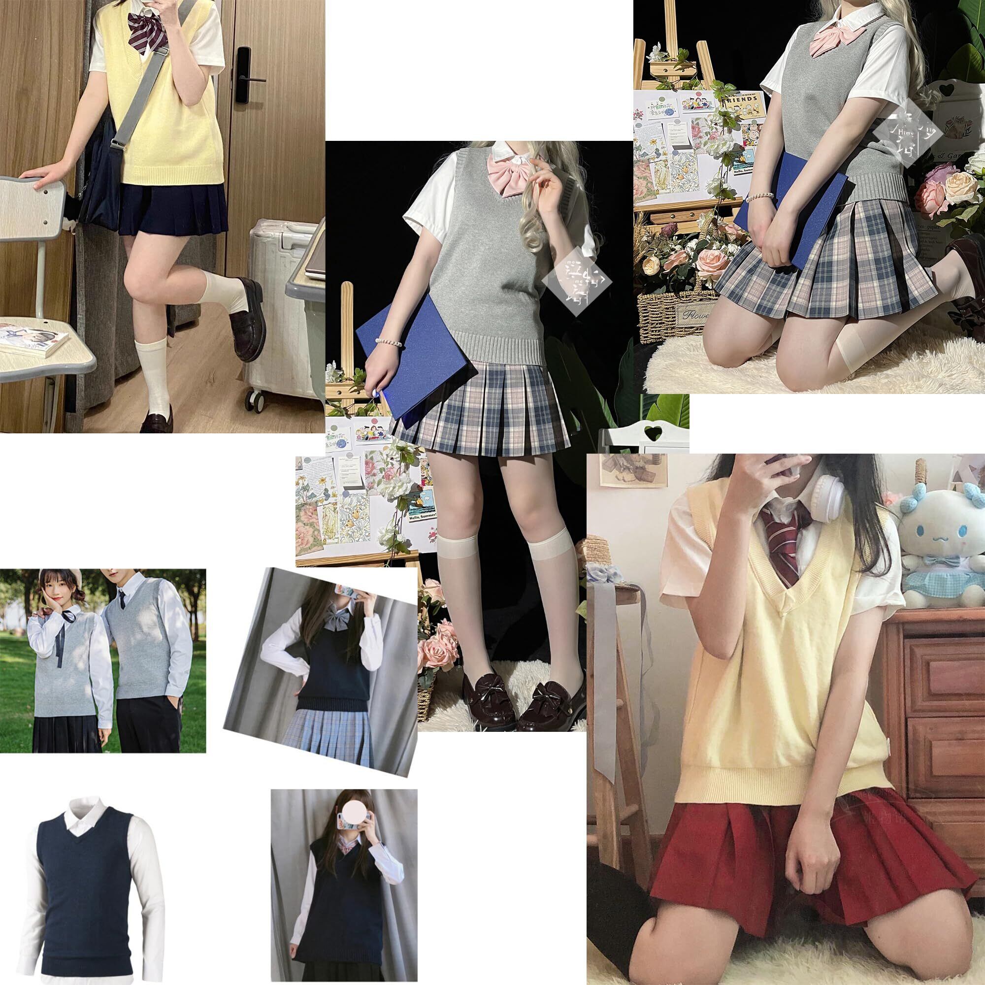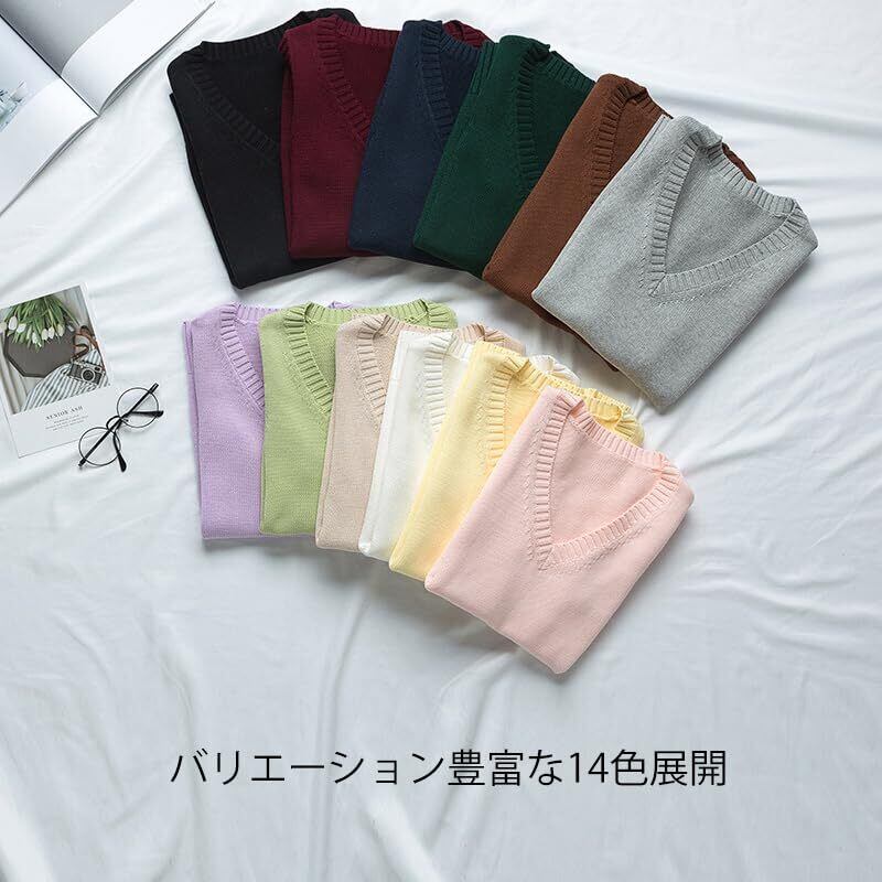 [Sharphon] スクール ベスト vネック ニット 大きいサイズ 女子 学生 ベスト セーター トップス 薄手 (XS-3XL)