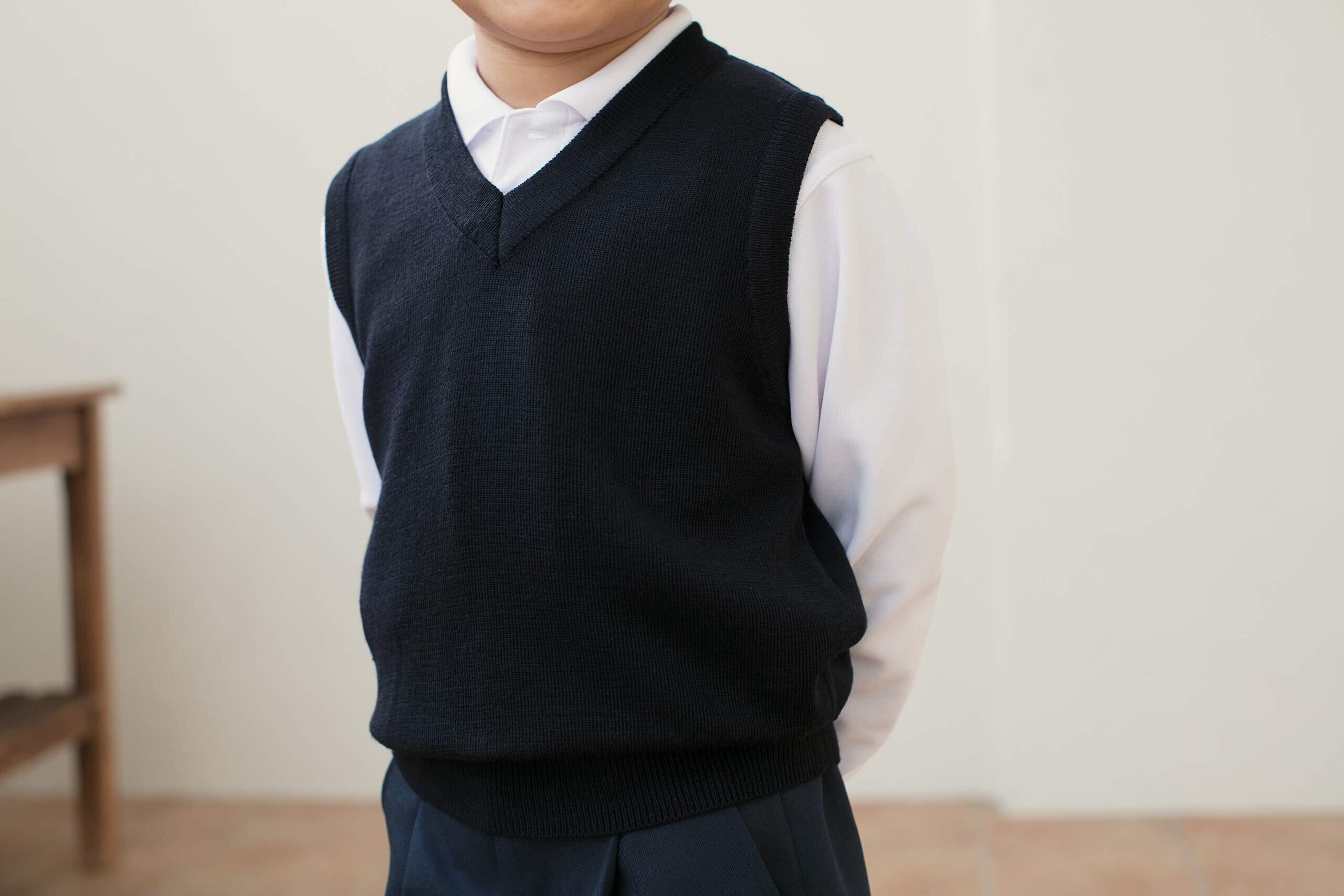 [キャッチ] スクールベスト ニット 無地 紺 キッズ アクリル100% 学生 小学生 中学生 制服 通学