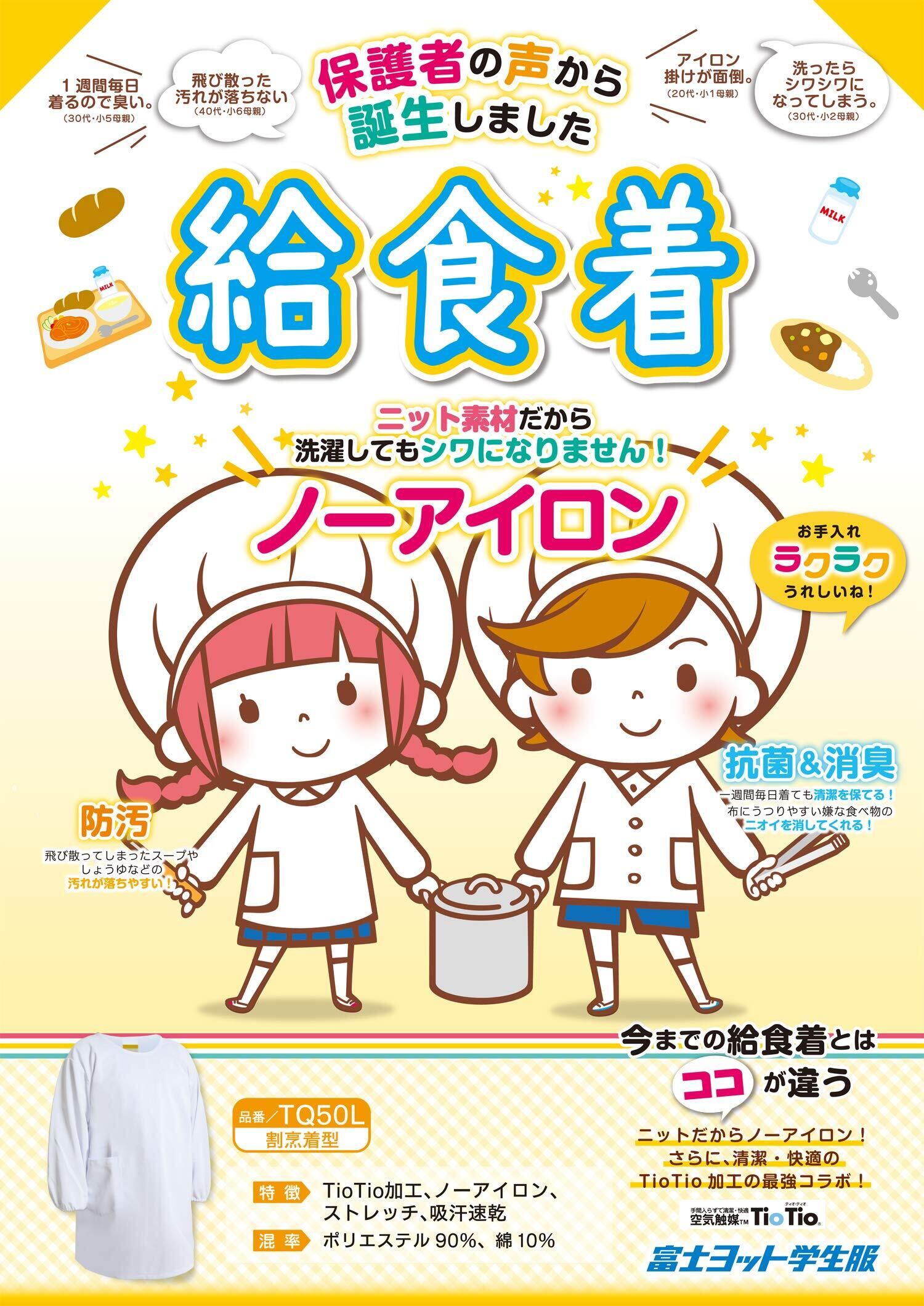 ノーイロン素材+TioTio加工の給食着です。