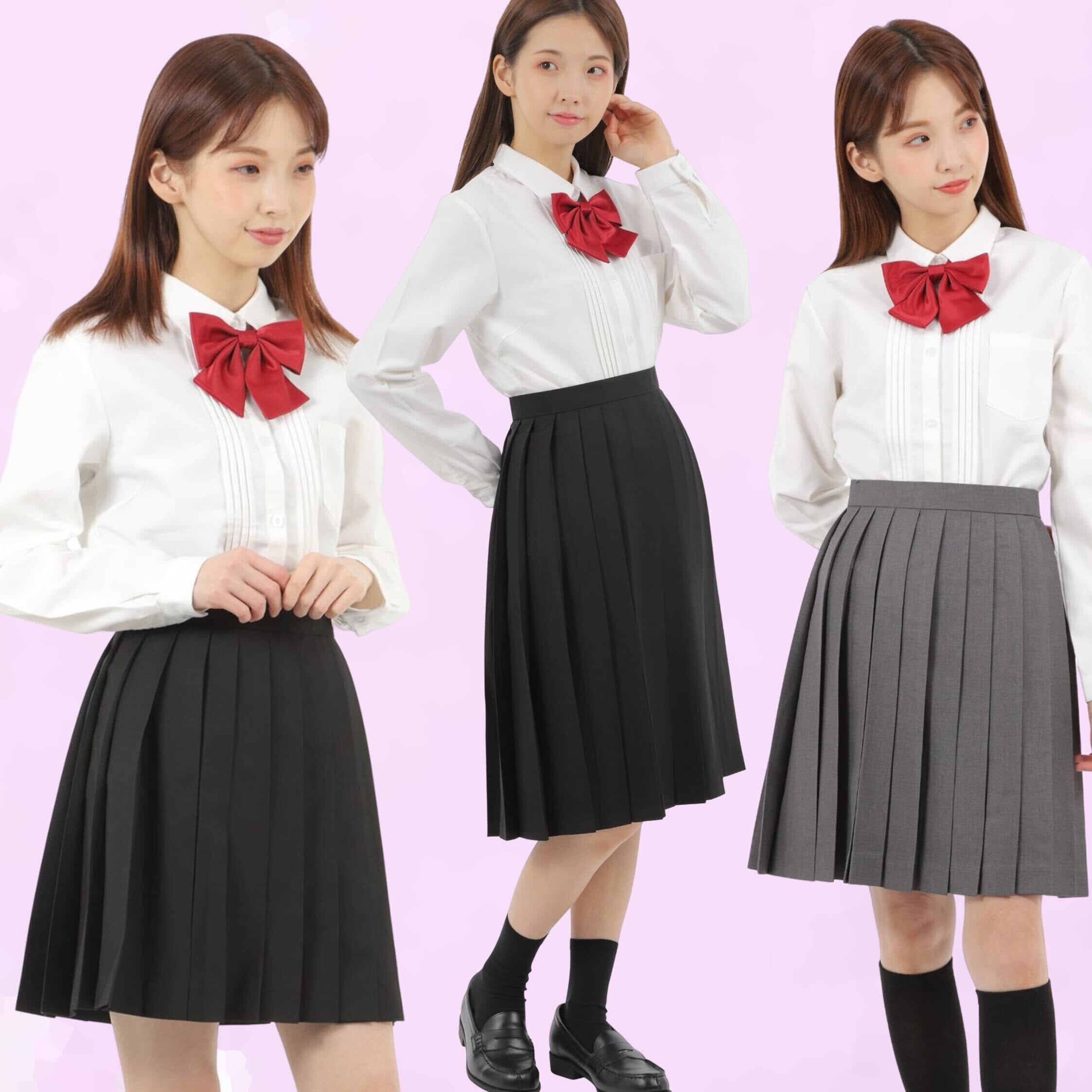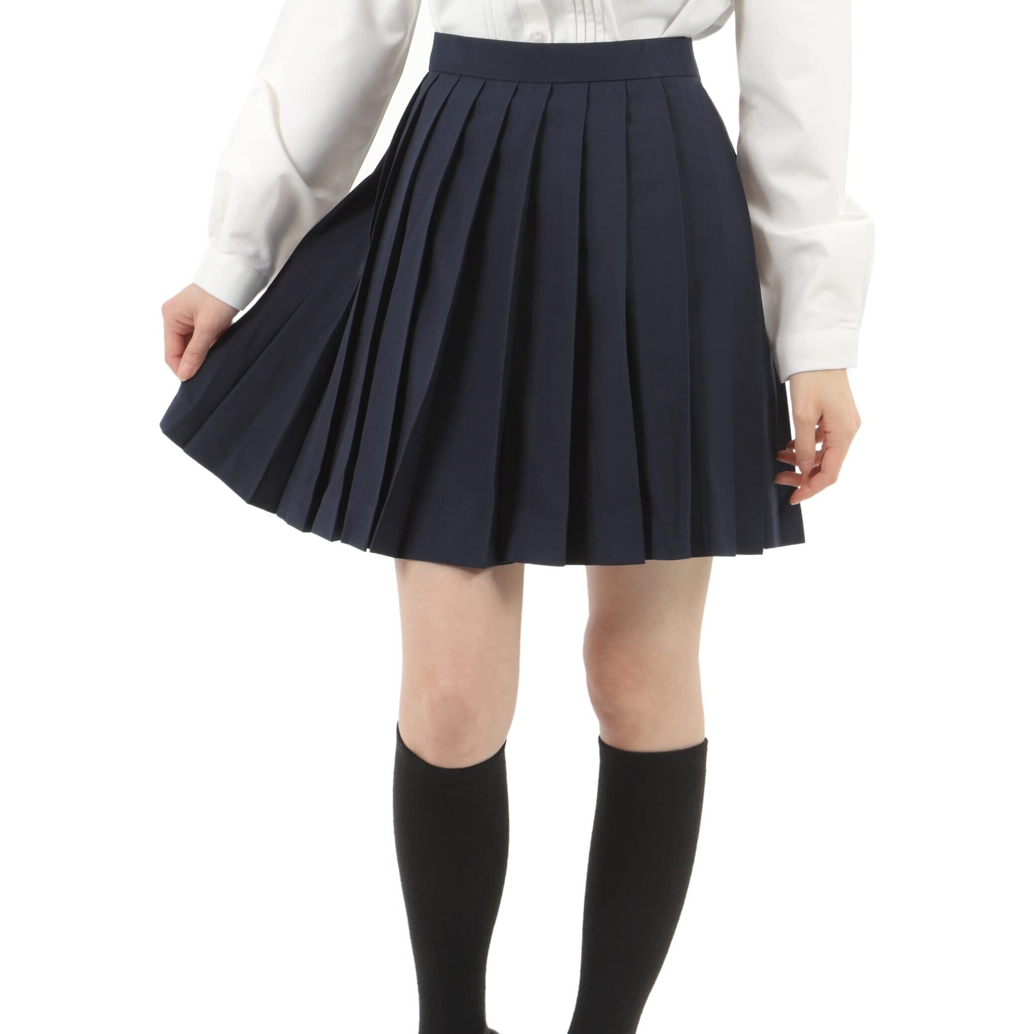 [Eiza] プリーツスカート 無地 学生 制服 車ヒダ スクールユニフォーム 女子高生 中学 e210