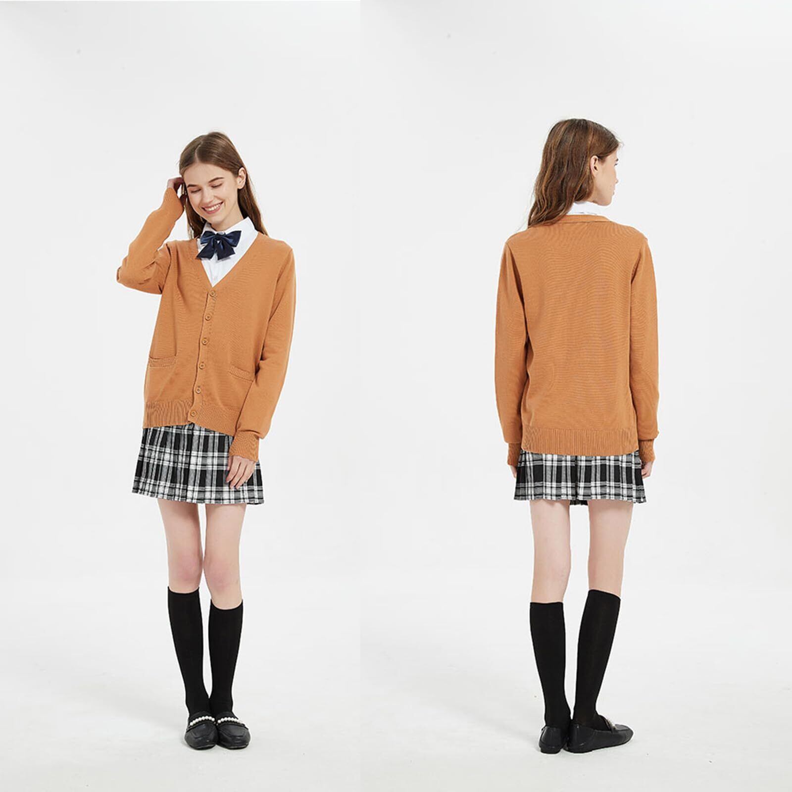 zuevi スクールカーディガン 女子 制服 カーディガン 長袖 学生 レディース セーター トップス Vネック 高校生 アウター セーター ゆったり コットン ニット プレゼント 無地 通学 通勤 春秋冬 ギフト