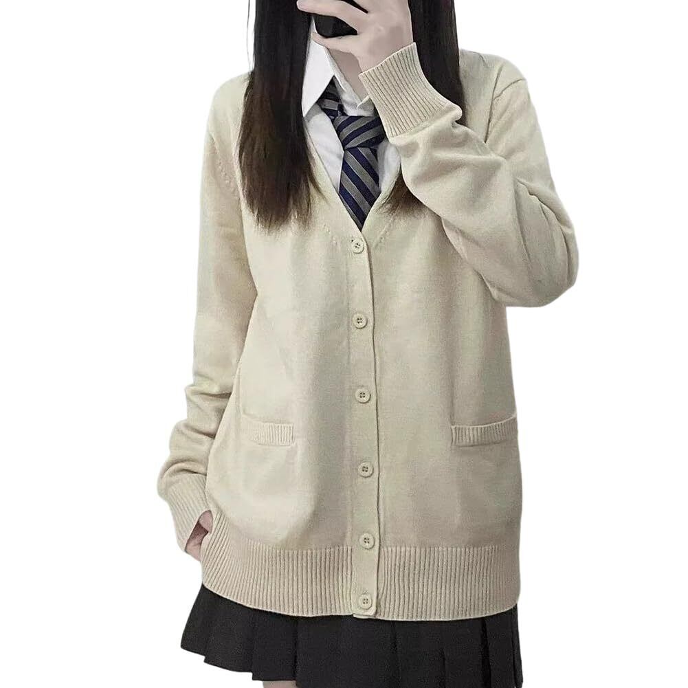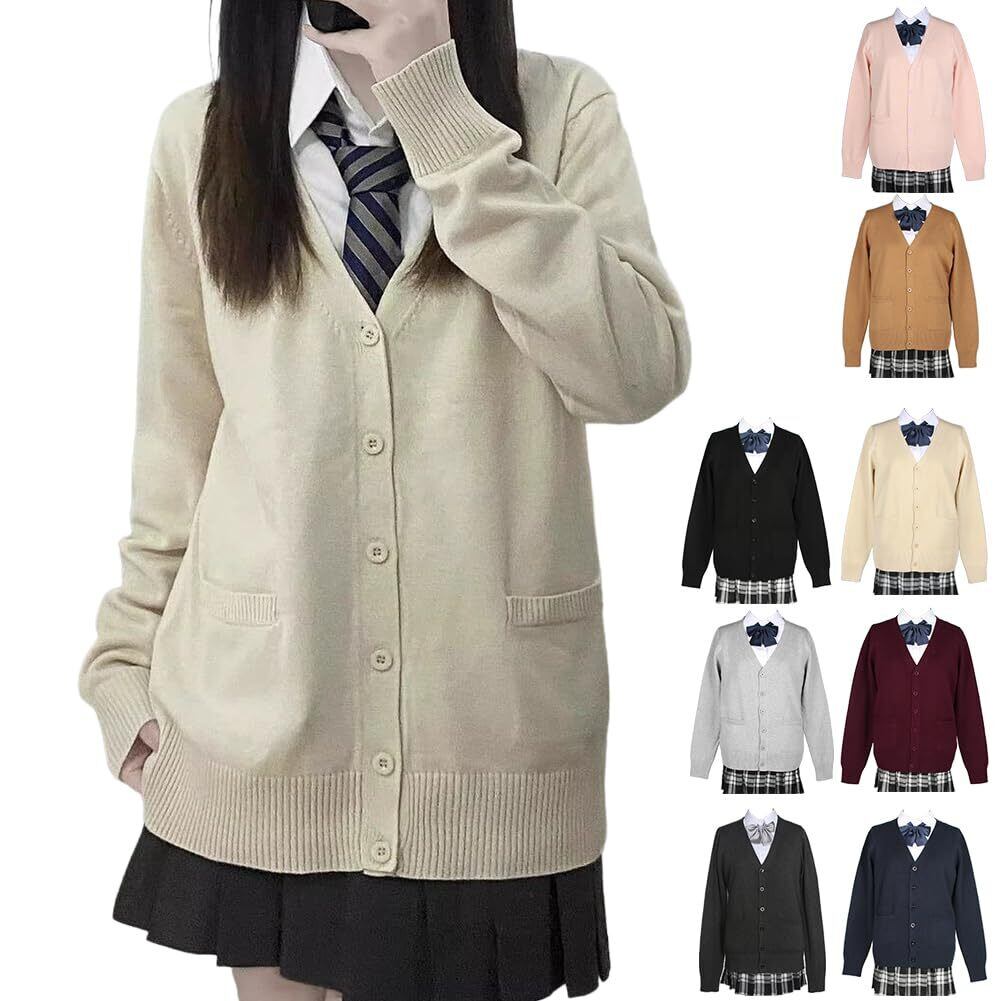 [HOTIAN] スクールカーディガン 女子 制服 Vネック スクールセーター 高校生 無地 ニットカーディガン 春 夏 秋 冬 通年 通学 通勤 春秋冬