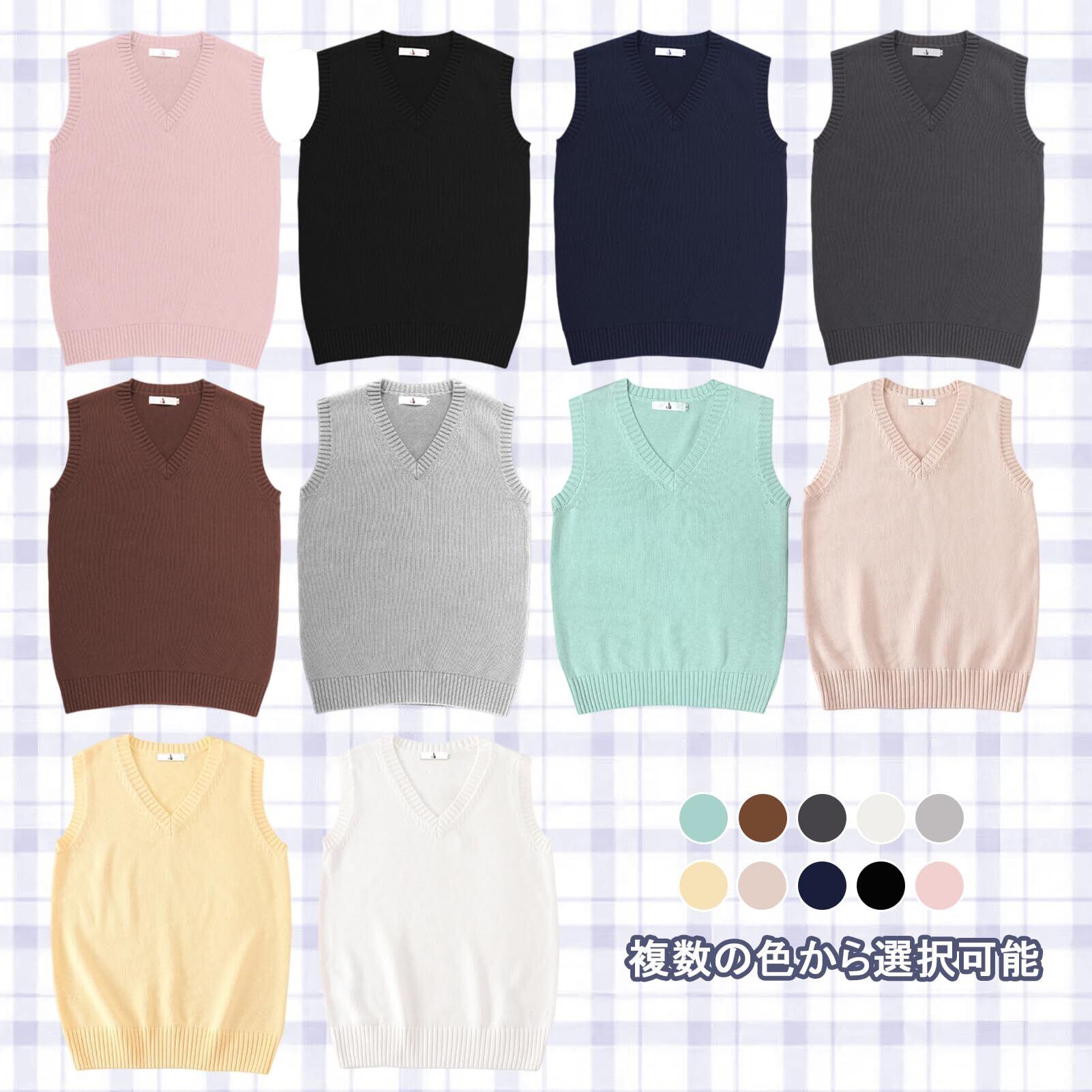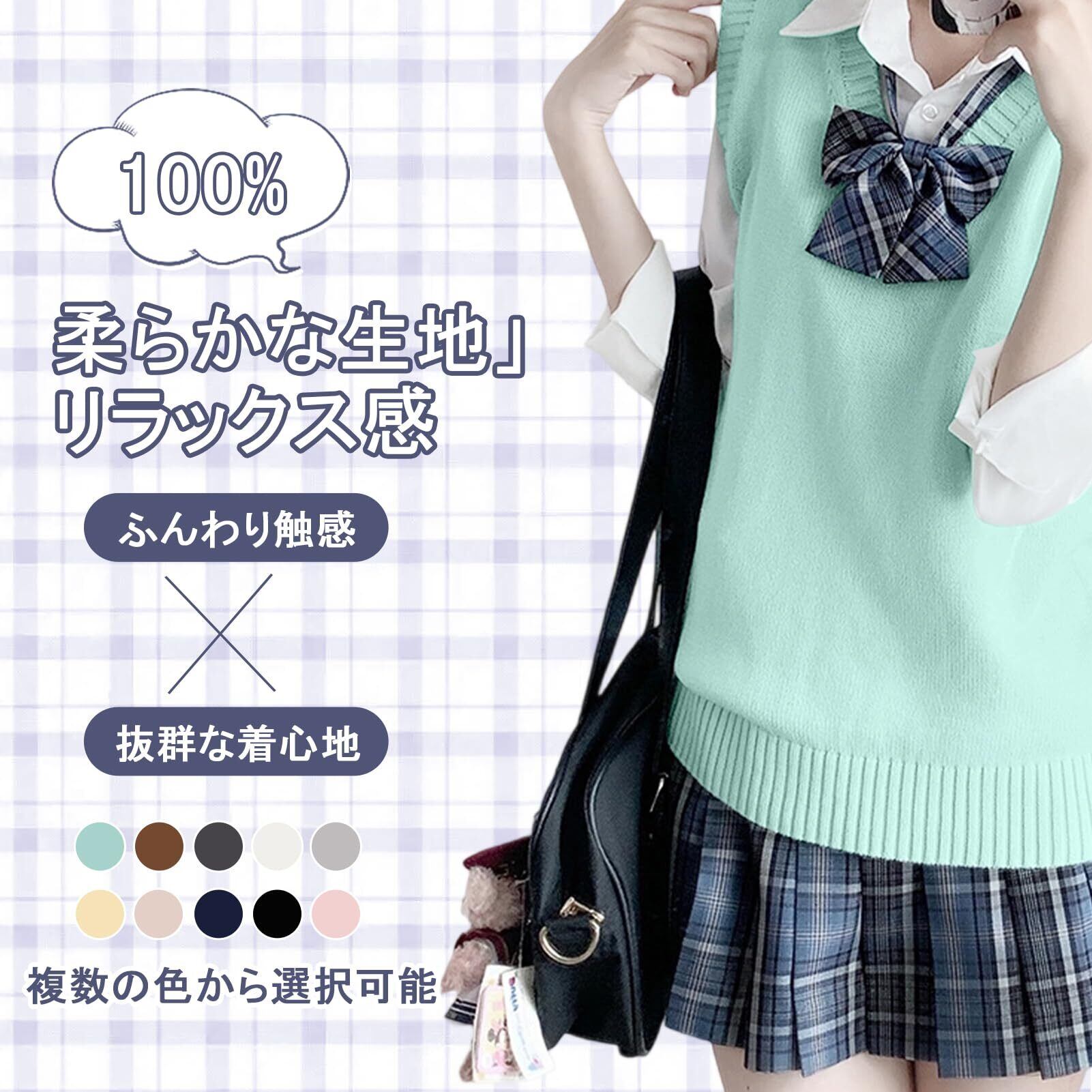 [Tumao] スクールベスト 女子 制服 ベスト 学生 制服 ニット Vネック ニットセーター ノースリーブ 袖なし 重ね着 ふわふわ 綿 ゆったり 丈夫 薄手 無地 可愛い お洒落 学 通勤 学生 JK 高校生 中学生 デート
