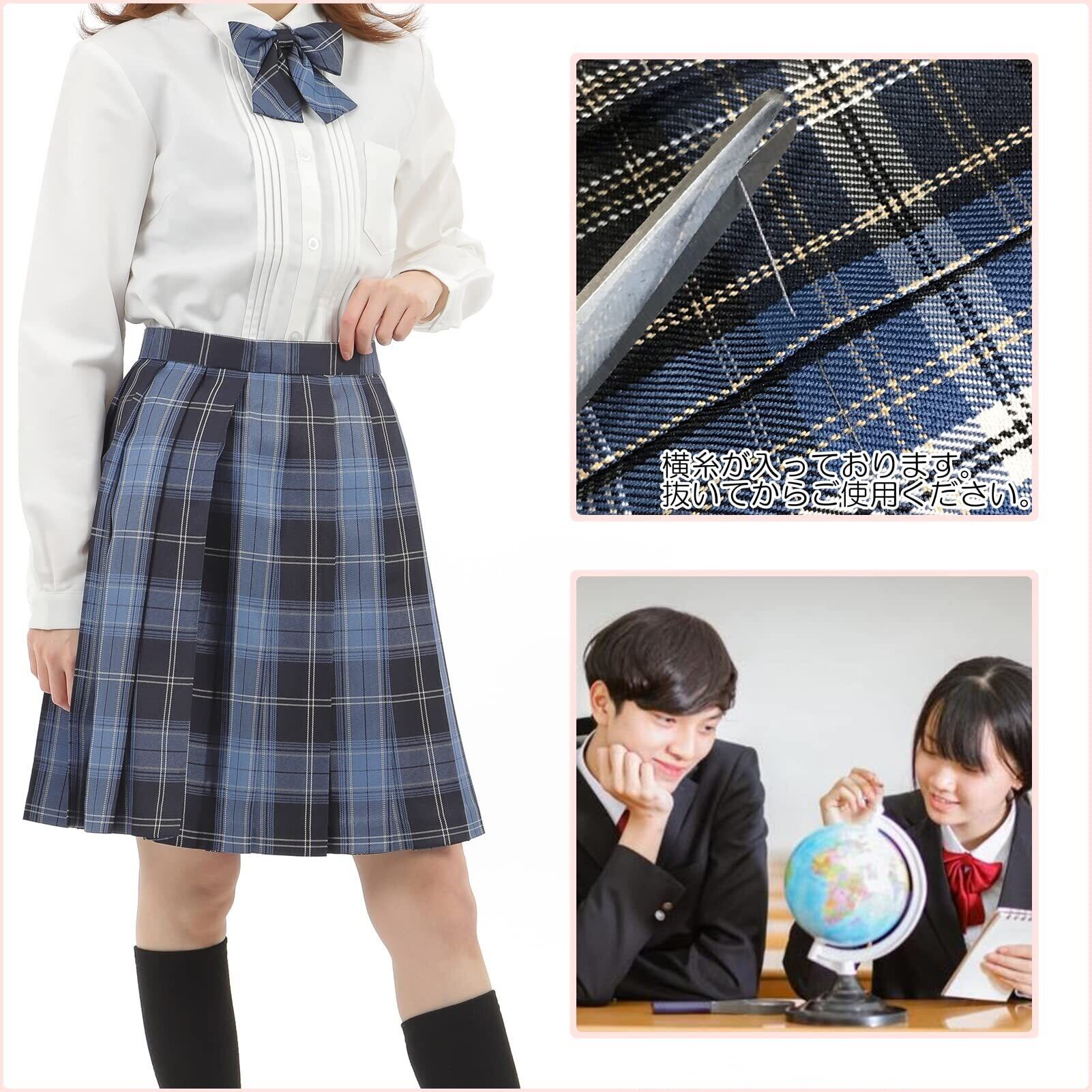 制服コーデはスクールセーターやネクタイ等で楽しめますが特に夏の時期はトップが半袖シャツとネクタイの小物等で限られてくるのでボトムス(スクールスカート)の柄を変えることでお洒落の幅が広がります。卒業後もカジュアルな着こなしや制服ディズニーやコスプレ、イベント等にもお使い頂けますよ。
