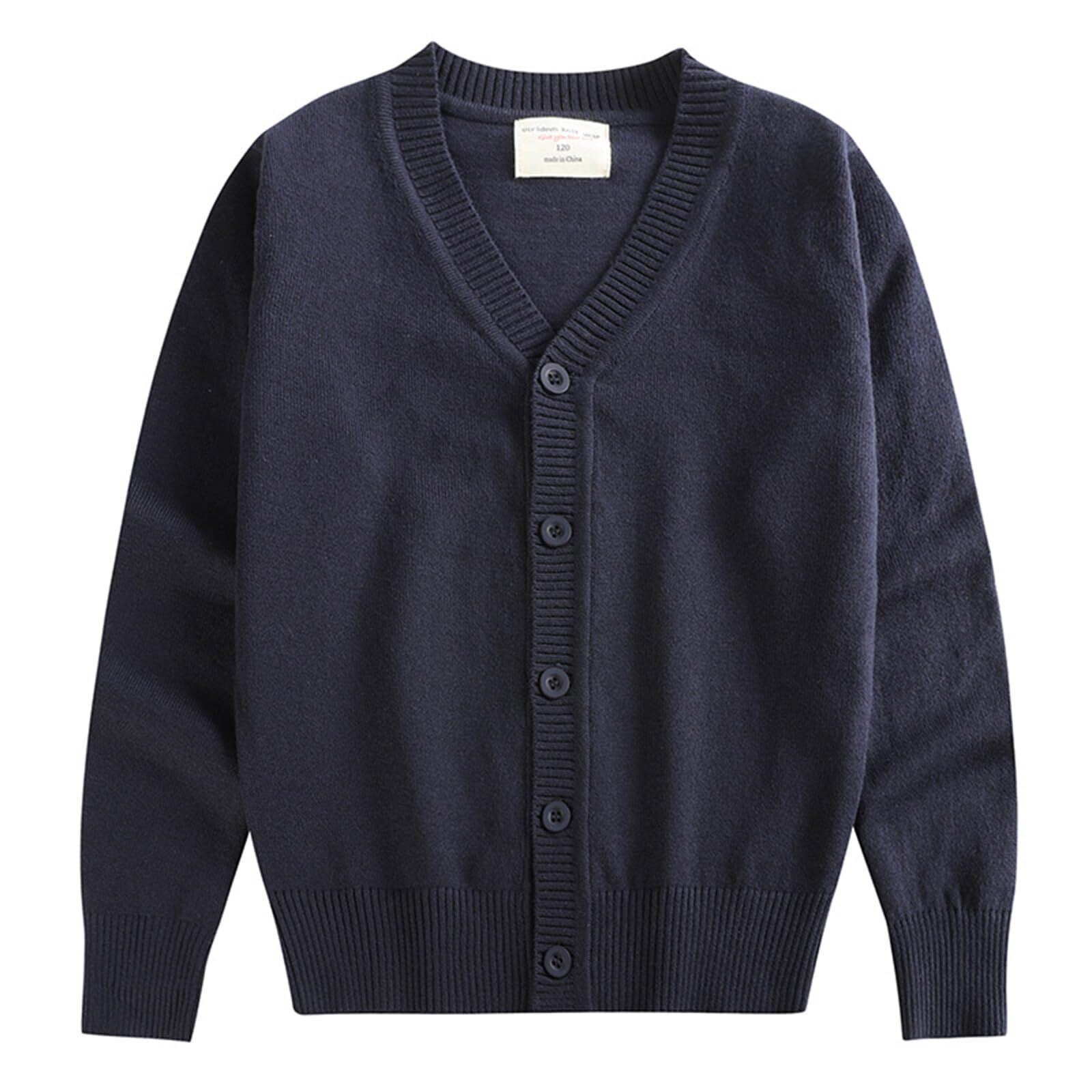 [Rolanko] キッズ カーディガン 男の子 女の子 スクールカーディガン 子供服 ニット セーター 無地 羽織 防寒 普段着 制服 110-170