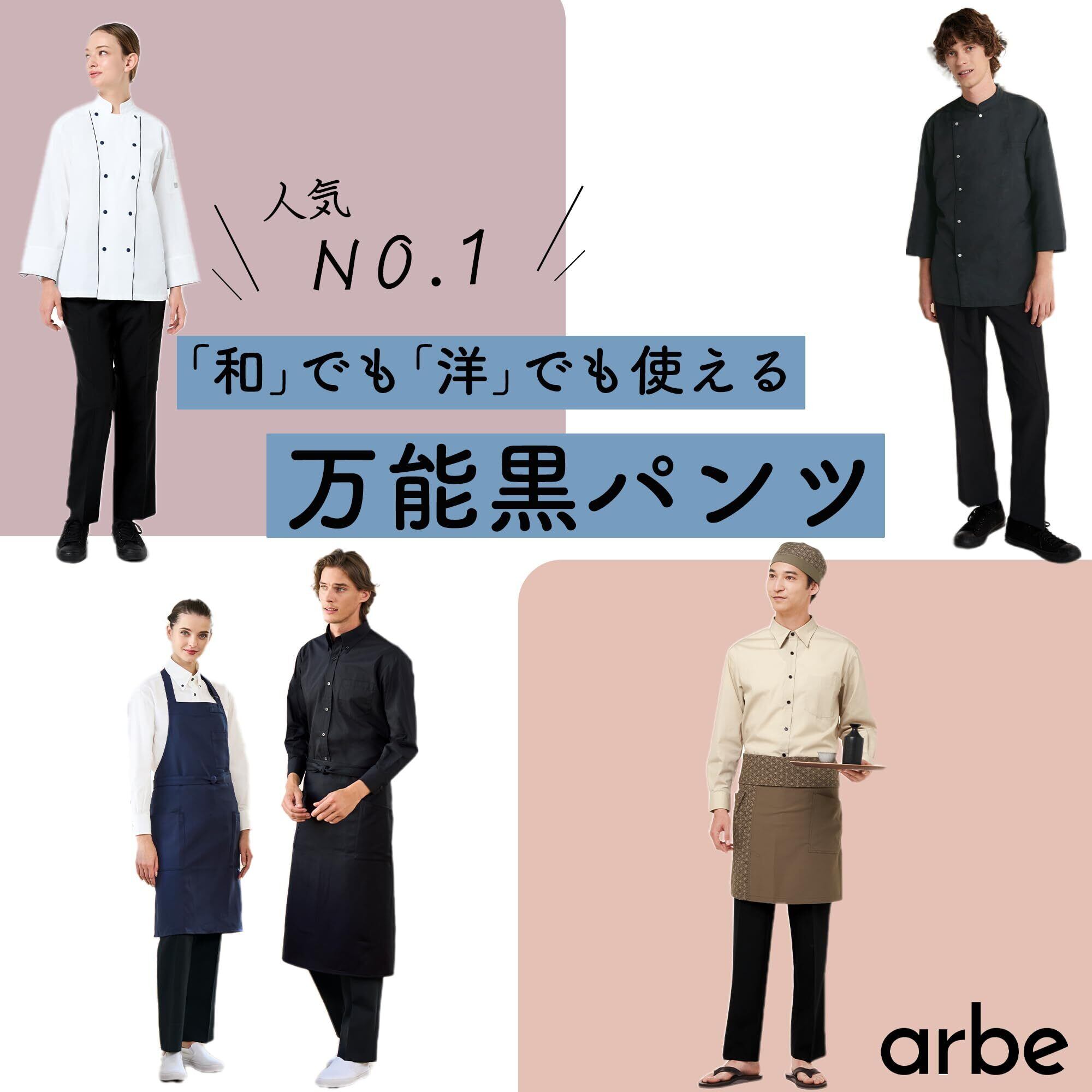 チトセロングセラー黒パンツ。飲食店や医療、介護からフォーマルまで幅広く活躍する万能パンツ!