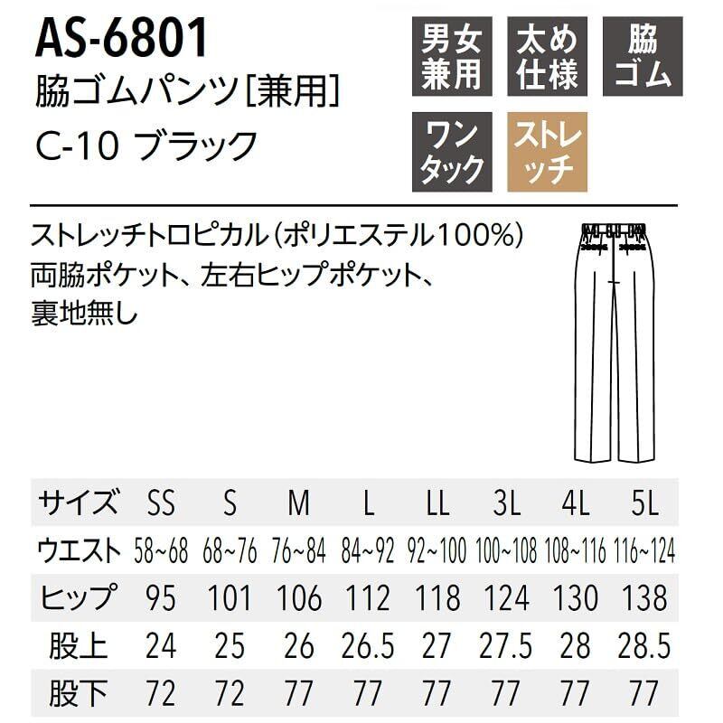 [アルベ] アルべ 黒パンツ 兼用 ストレッチ 脇ゴム 裾上げ不要 SS~5L 飲食 厨房 医療 制服 ARBE AS6801 C-10 ブラック メンズ