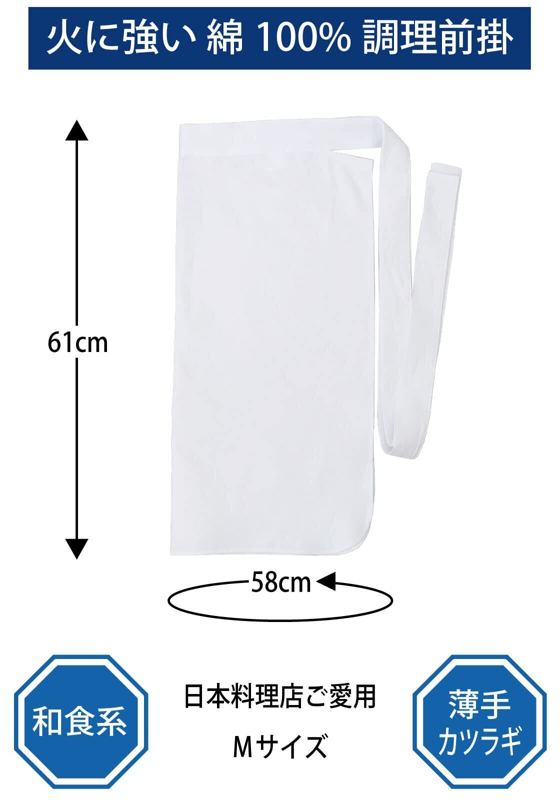 [センツキ] 調理 厨房 エプロン 前掛け 腰下 前掛 和食 日本料理 板前 ウエスト フィット 立体裁断 綿100% カツラギ 火を使う環境に最適 Mサイズ 中心丈61cm 白 10010M