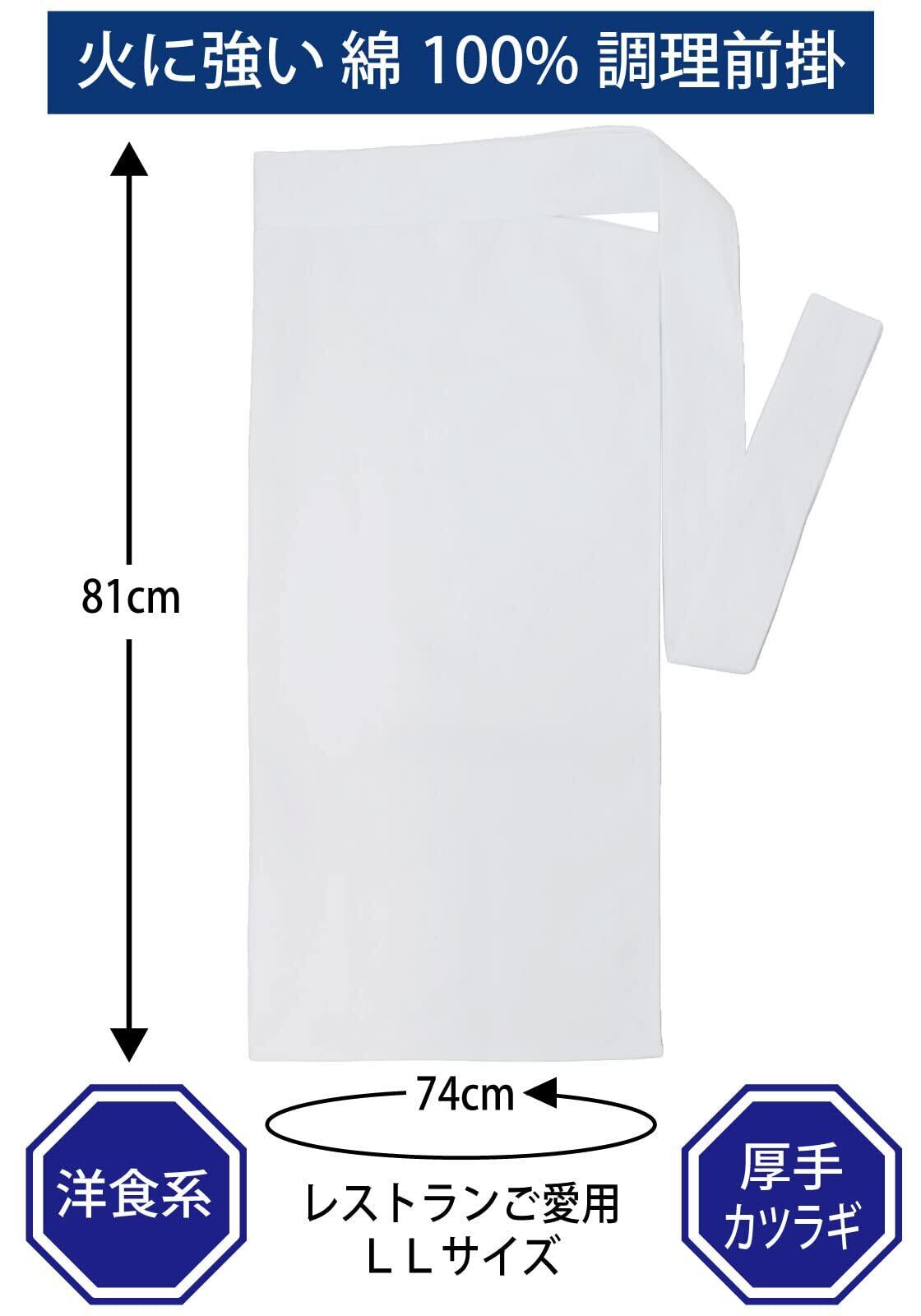 [センツキ] 調理 厨房 エプロン 前掛け ロング 腰下 前掛 洋食 料理人 飲食 ウエスト フィット 立体裁断 綿100% 厚手 カツラギ 火を使う環境に最適 LLサイズ 中心丈81cm 白 10010LL