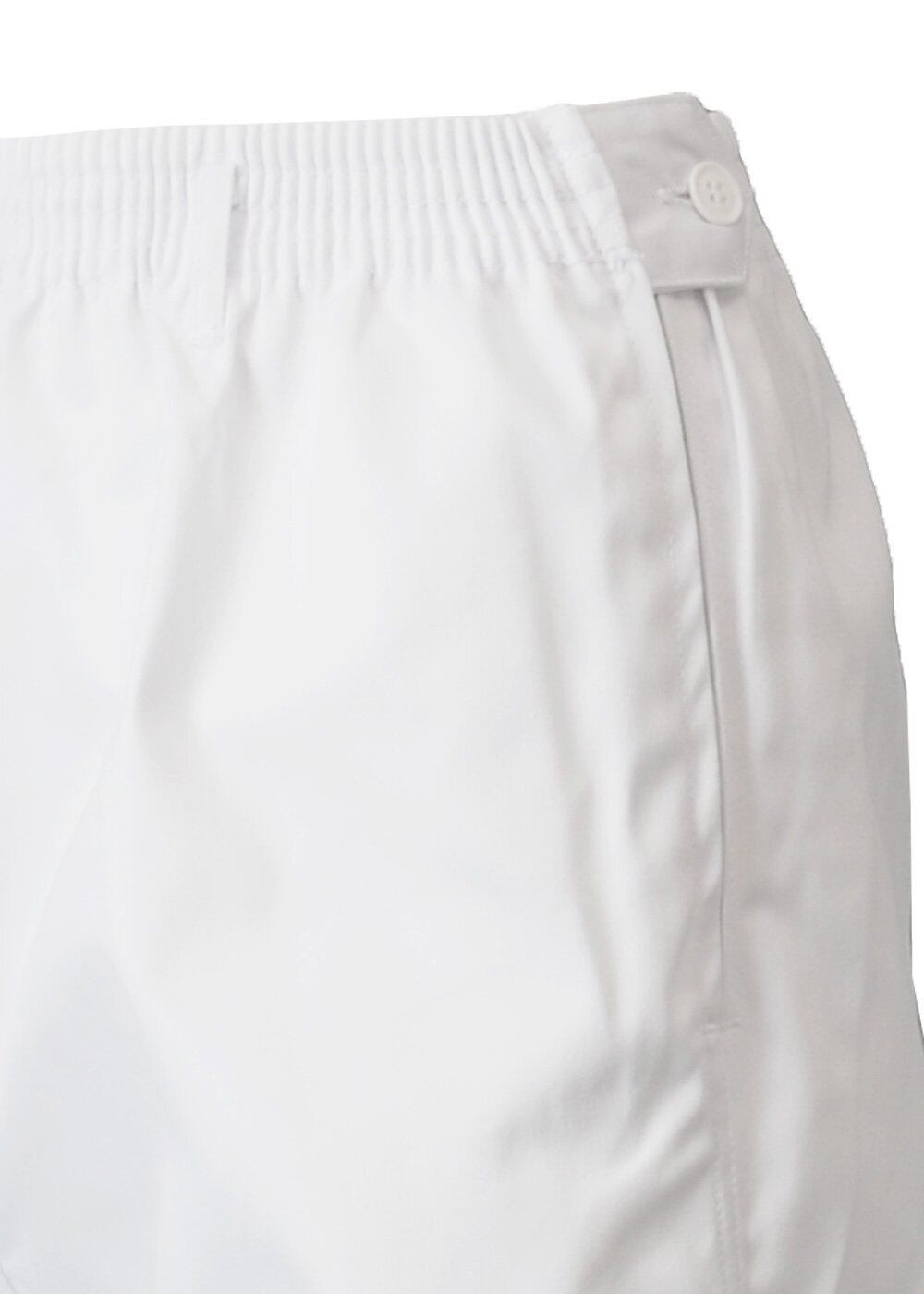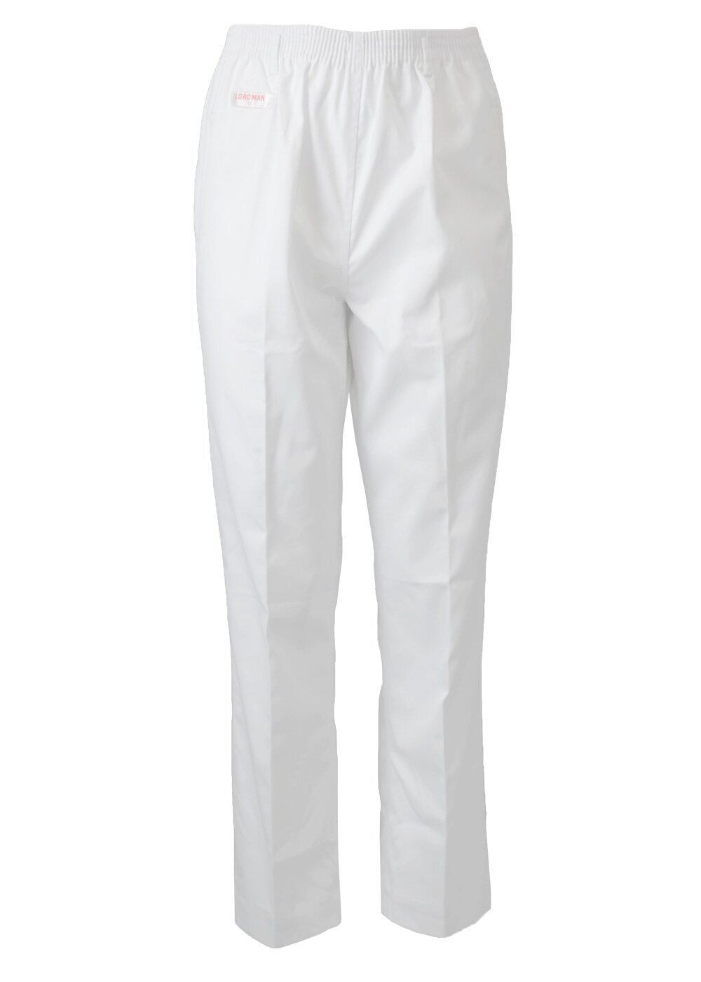 抗菌防臭&静電気帯電防止素材を使用した、ウエスト総ゴムの白の女性用ズボンです。