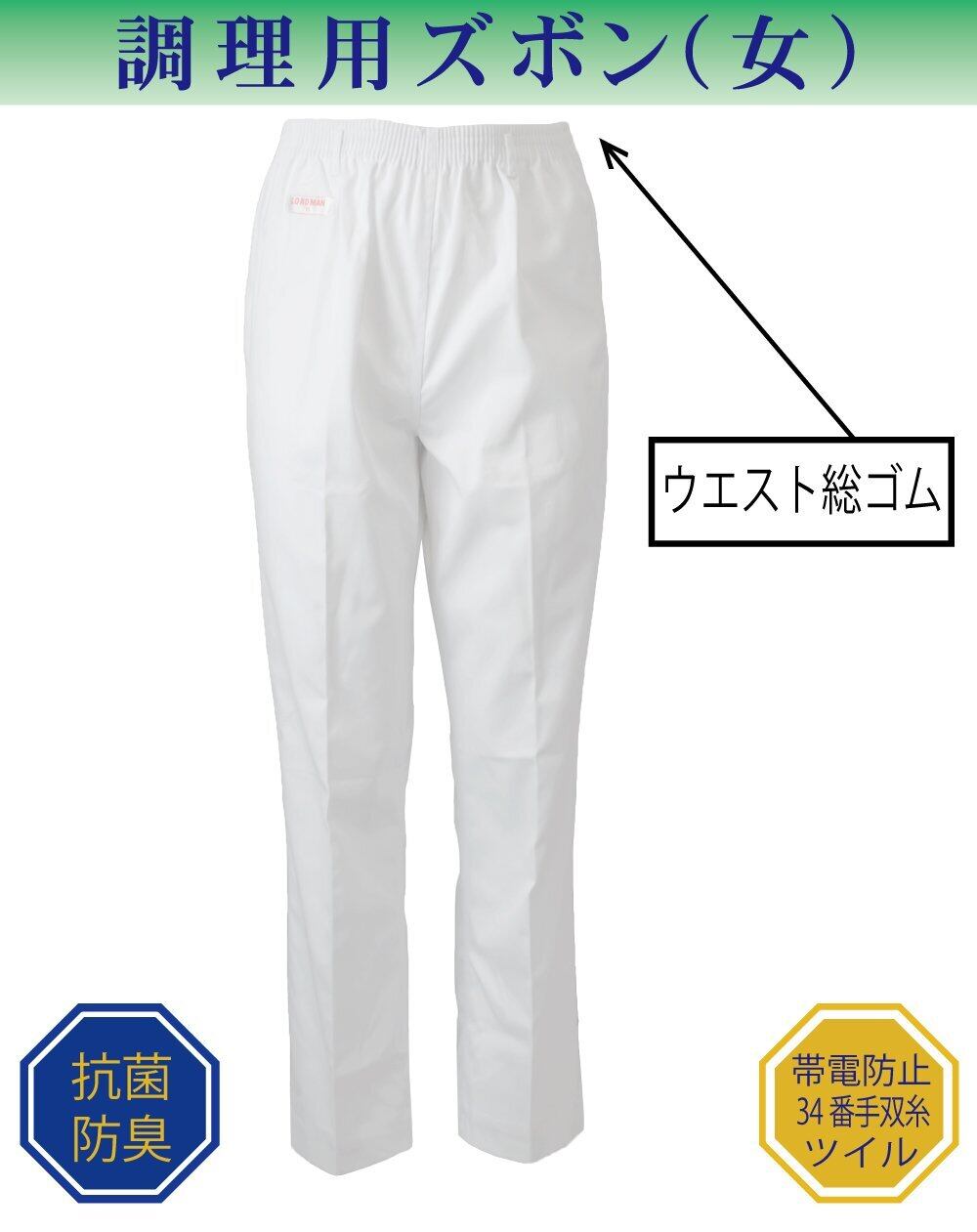 [KOKURAYA] (コクラヤ) 白ズボン 調理 食品 女性用 抗菌防臭 ホワイト ウエスト総ゴム [ ポリエステル65% 綿35% 帯電防止T/Cツイル ] 全6サイズ 6370-90
