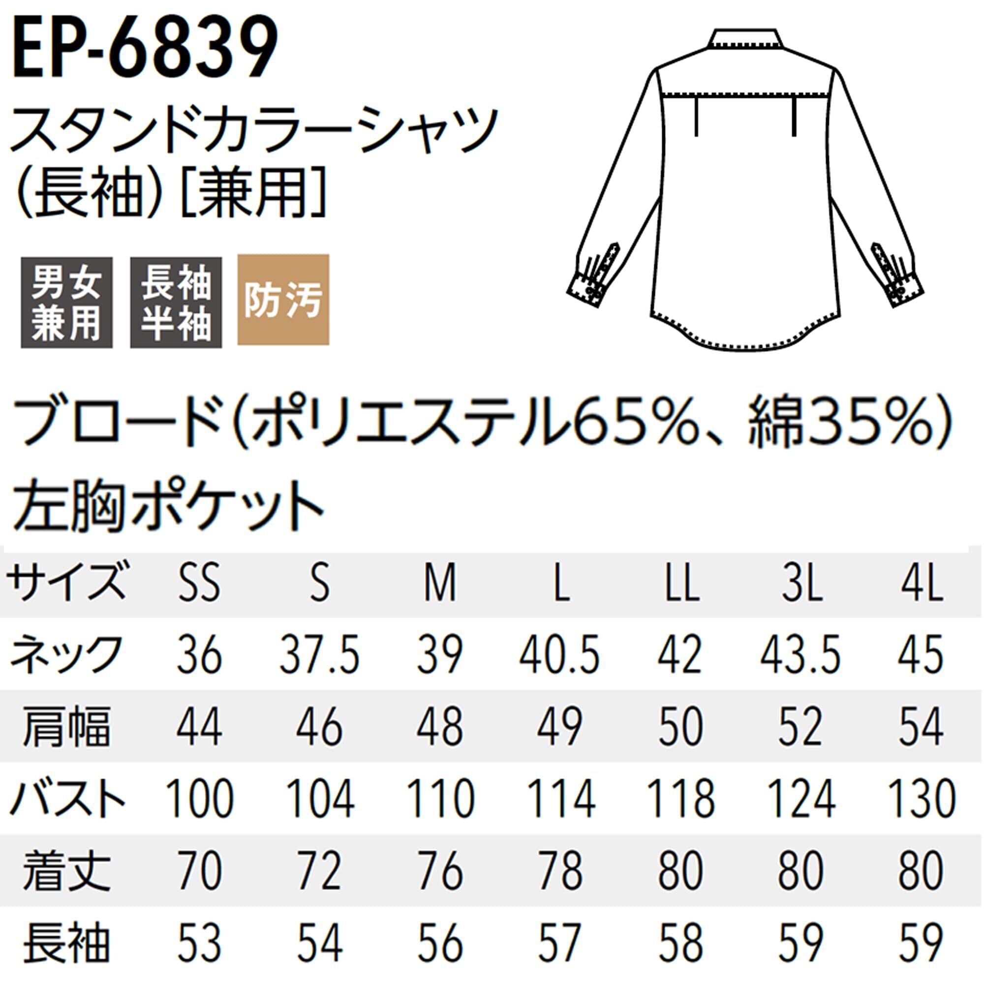 [アルベ] アルべ スタンドカラーシャツ 長袖 全5色 SS~4L 飲食 カフェ レストラン 衣裳 ARBE EP6839