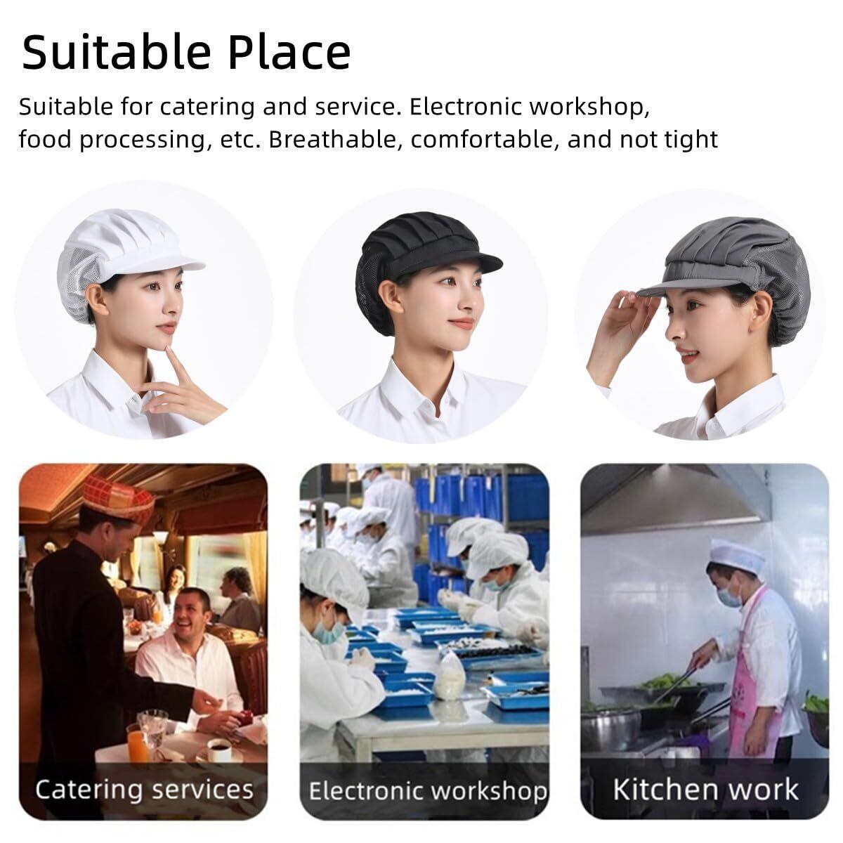 【料理に必須】 これらのコック帽はキッチンにぴったりで、特に長い髪を持っていると、簡単に髪をネット帽の中に引き込むことができ、髪を食べ物から遠ざけ、良い仕事ぶりを維持するのに役立ちます。その縁にはほこりが落ちないように設計されています。