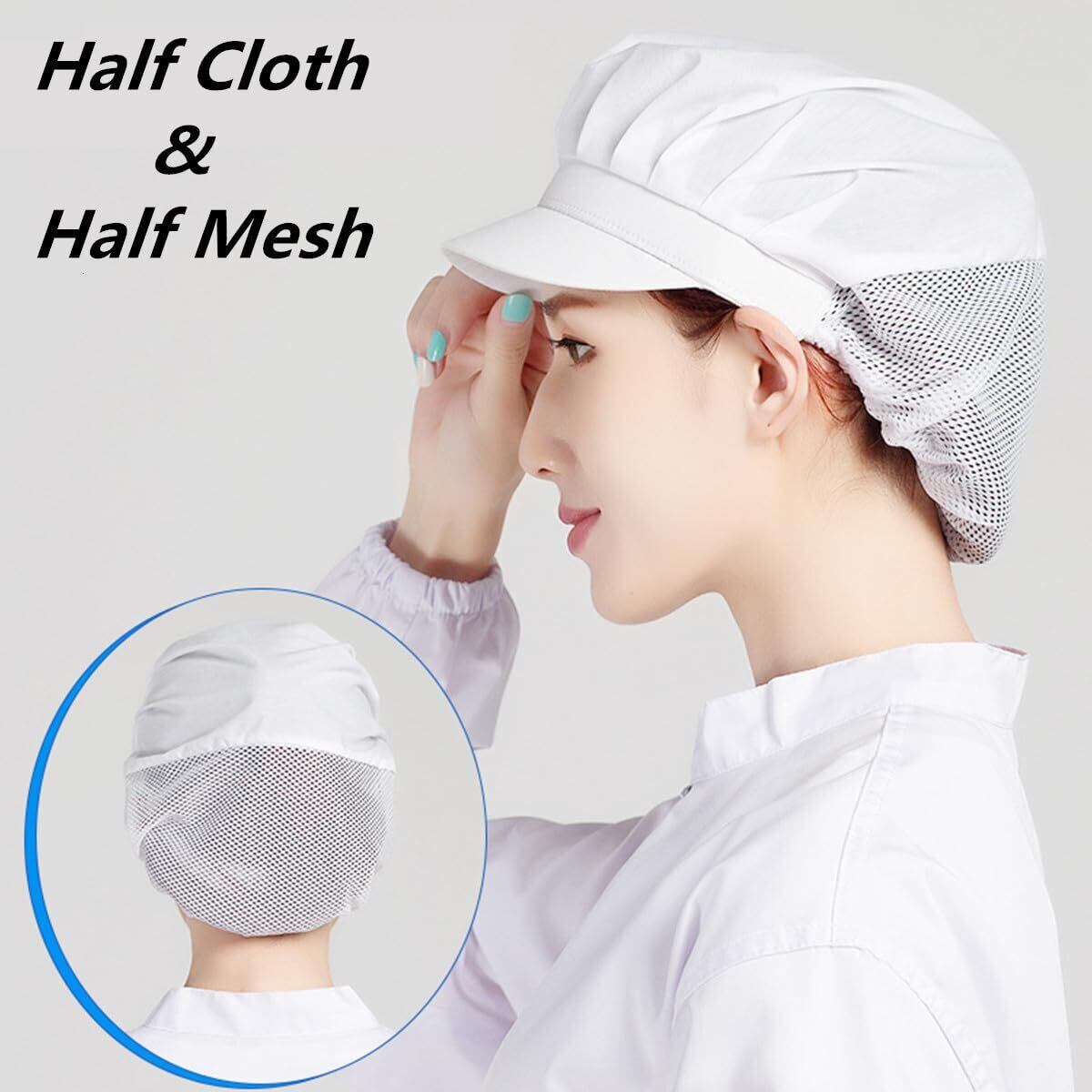 【半網半布設計】 キッチンハットの前半は布、後半は網になっています。汗を吸って空気を通すことで、仕事中に帽子をかぶることによる頭の汗を効果的に減らすことができます。