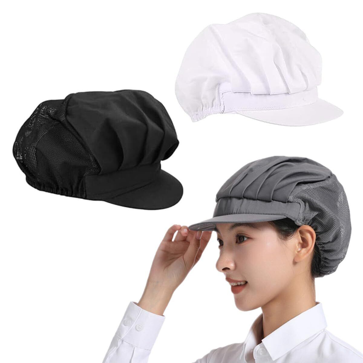 [Getrays] 3枚セット コック帽子、男女兼用 衛生キャップ 厨房用 調理帽子、ハーフメッシュ 半布 通気性 衛生帽 飲食店 ネット帽子 つば付き、フリーサイズ 給食帽 ために カフェ 料理屋 ウェイター 料理師 パン屋