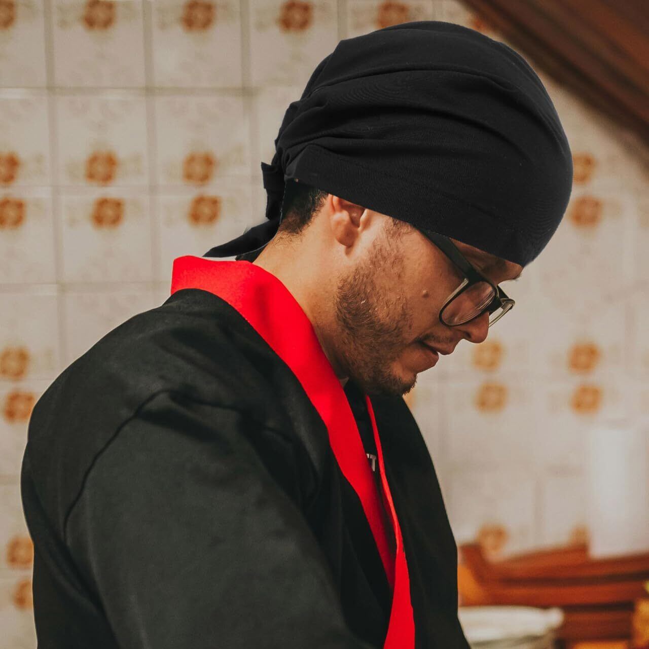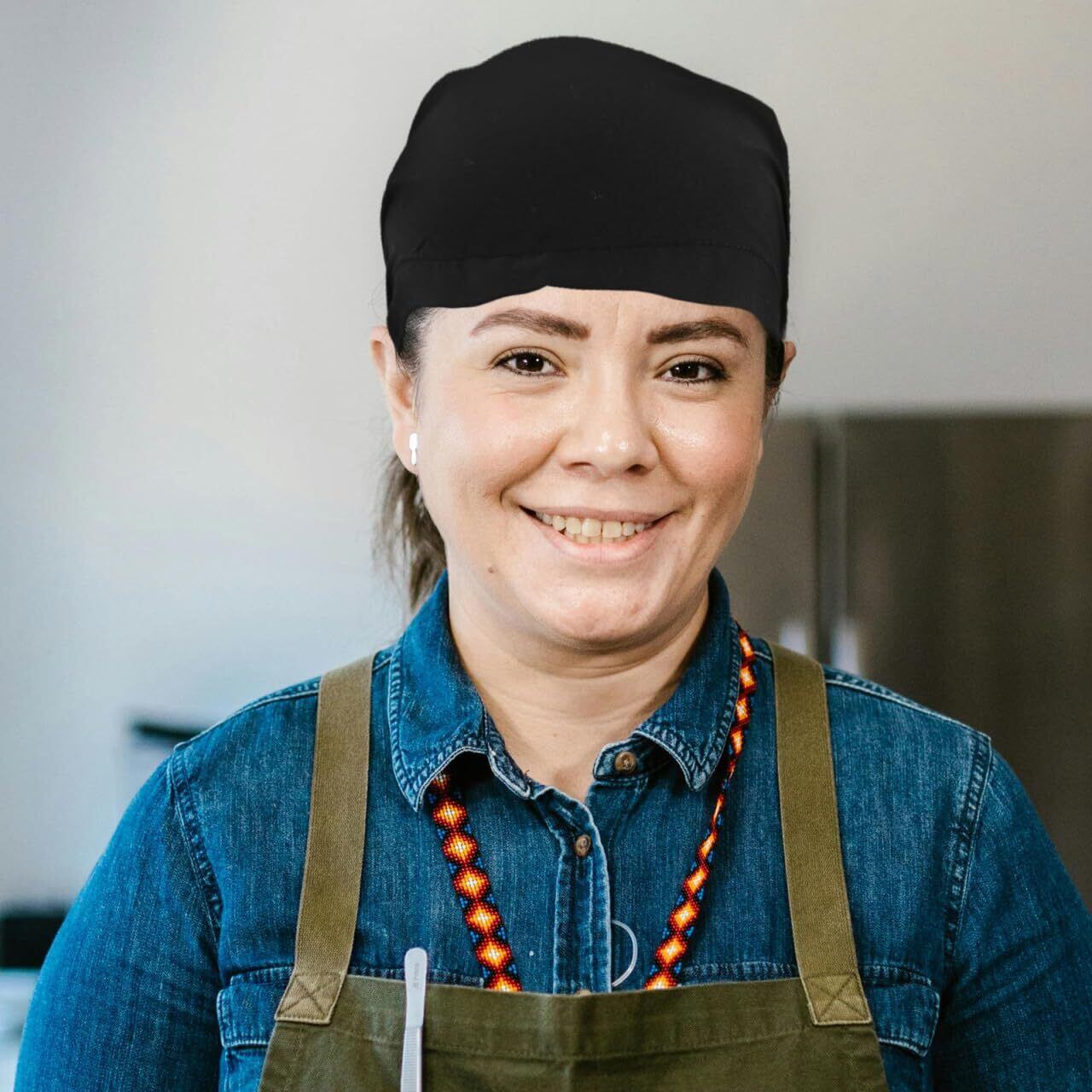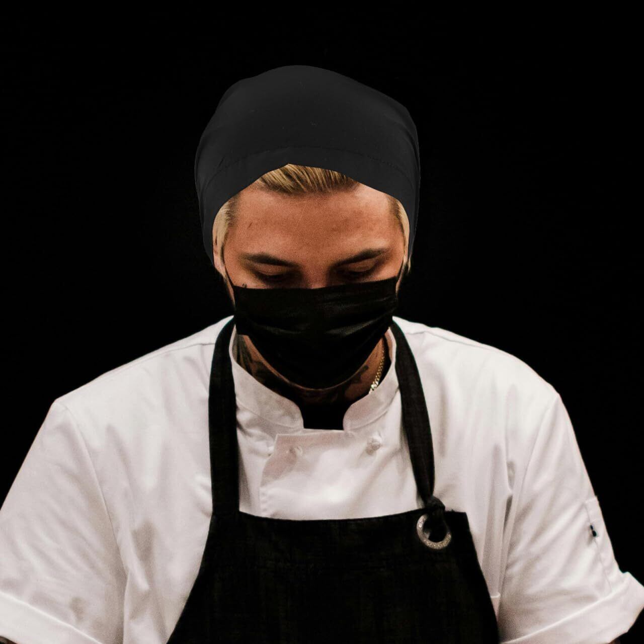 【黒色の料理用ヘッドウォーマー】飲食店で働く方にぴったりなヘッドウォーマーです。ポリエステルと綿の混紡素材で、“油煙や髪の落ち防止” に役立ちます✨