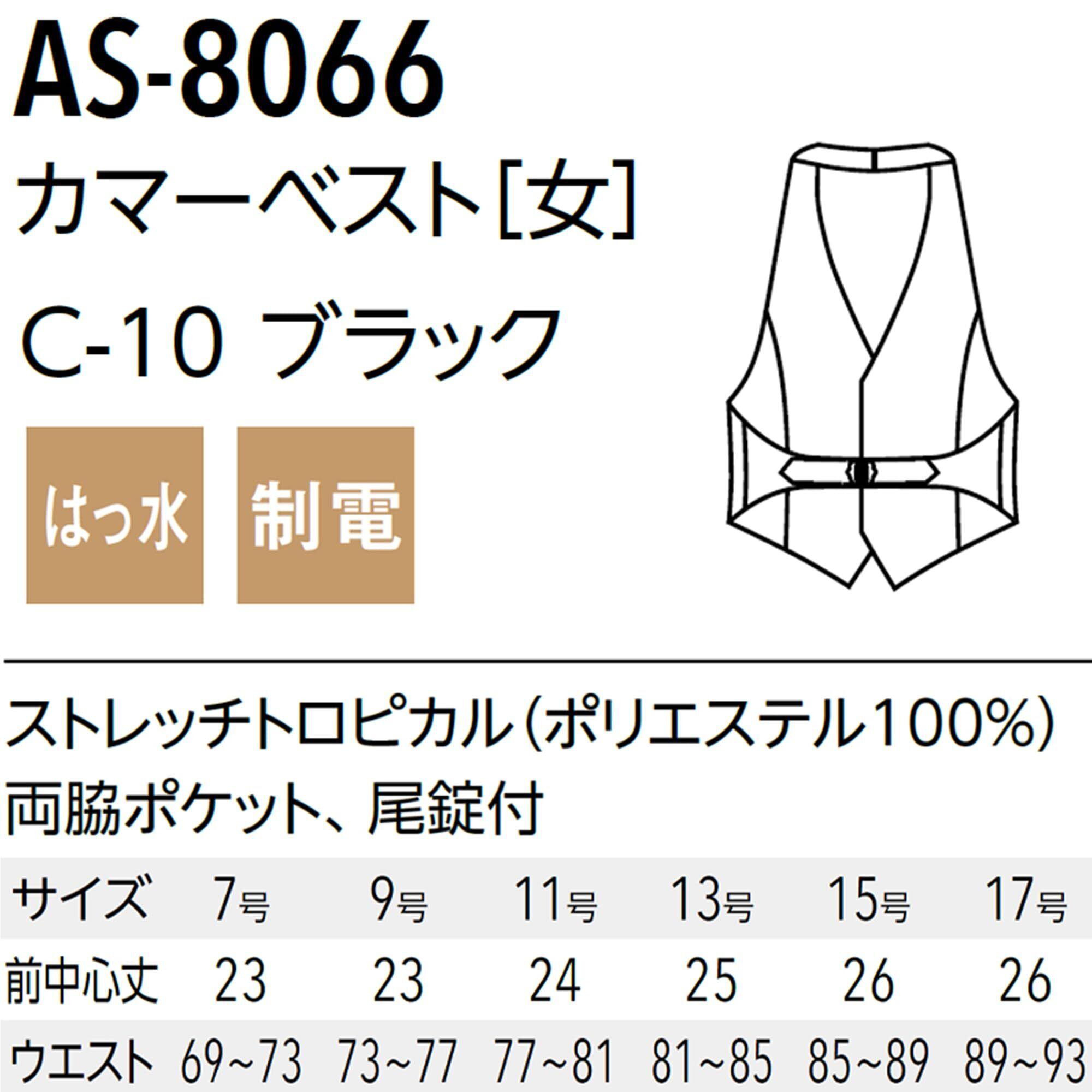 [アルベ] アルべ カマーベスト レディース 黒 7~17号 ストレッチ ウェイトレス バーテンダー レストラン ソムリエ フォーマル 制服 AS8066