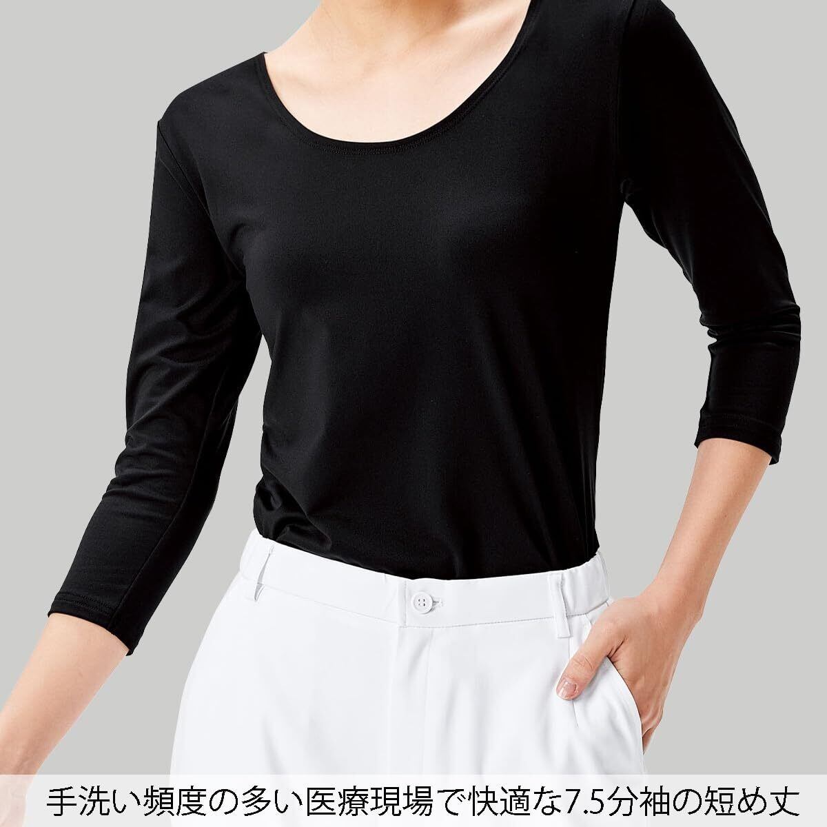 [フォーク] レディース 女性用 インナーウェア カットソー 7.5分袖 医療 介護 メディカル 17 9001 ブラック