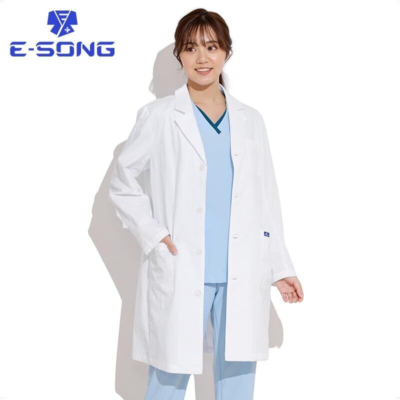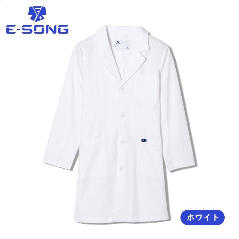 [E-SONG] 男女兼用 白衣 ストレッチ 柔らかい肌触り 綿高混率 サイズ充実 工業洗濯可能 ドクターコート 診察衣 医療 091