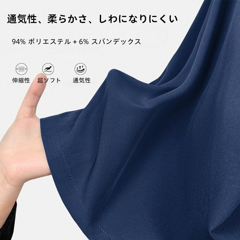 【快適素材】素材構成: 94% ポリエステル + 6% スパンデックス。透湿性に優れ、柔らかく、伸縮性が高くしわになりにくい仕上がりです。耐久性にも優れ、繰り返し洗濯しても形崩れしにくい素材を採用しています。