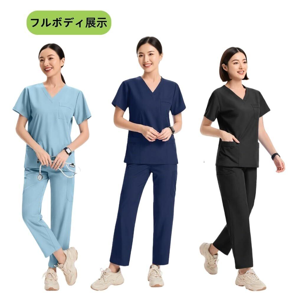 [Aylashine] スクラブ 医療 上下セット 半袖 ズボン 看護 介護 男女兼用 白衣 制服 ワークウェア 速乾ストレッチ