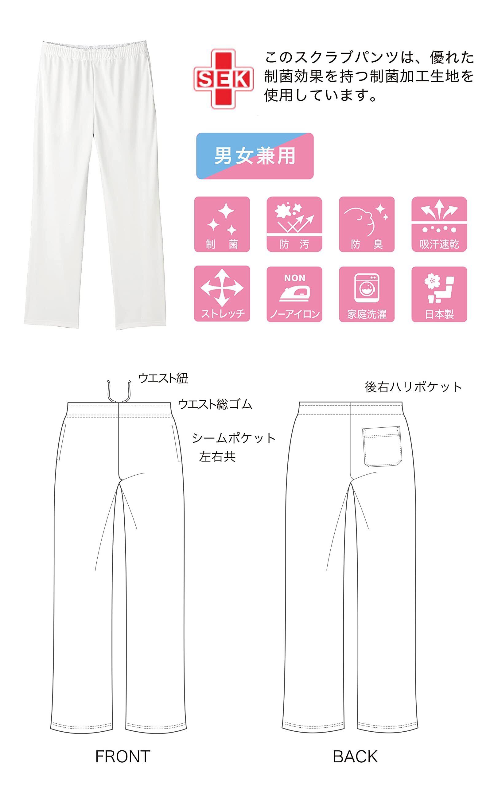 [ララスキル] F-9201S 短め丈 ケーシーの替わりにもなる男女兼用スクラブパンツ (医療 白衣 制菌 防汚)