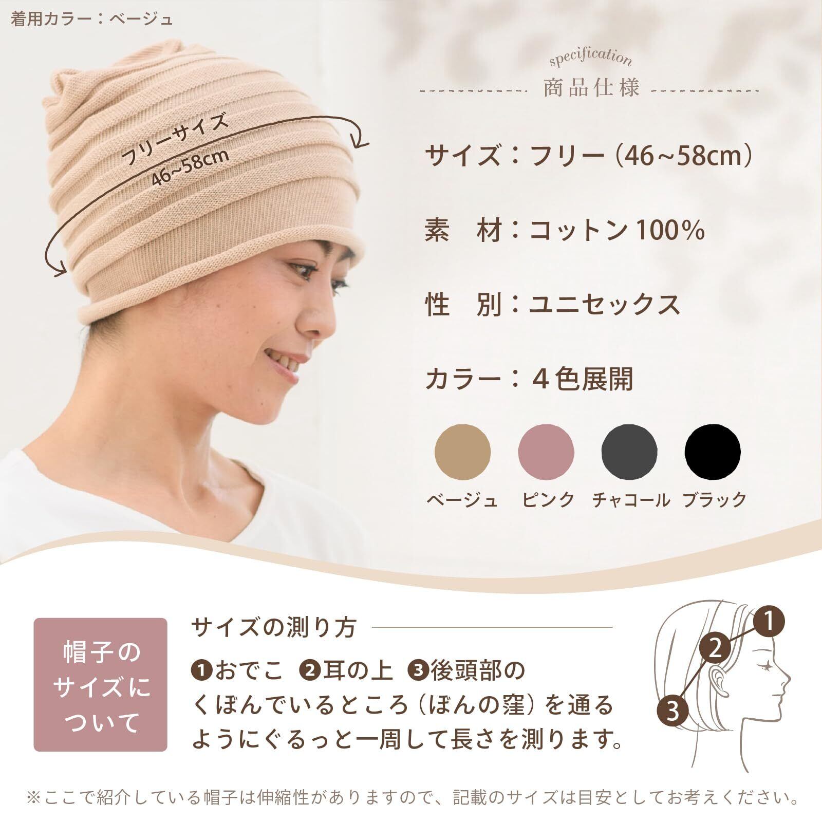 [アデランス] 医療用(脱毛時用) 帽子・コットンニット 男女兼用 コットン100% 伸縮性 洗濯機洗い可能 フリーサイズ (46~58cm) 通気性が良い 通年使用可能 プレゼント ギフト