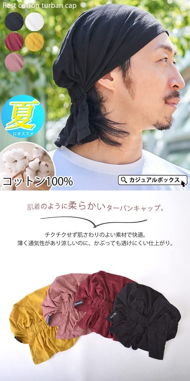 CHARM コットン100% 薄手 レスト ターバン キャップ [ フリーサイズ / 5色 ] 医療用帽子 おしゃれ 三角巾