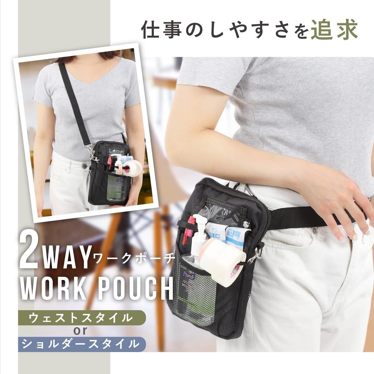 YUKANO たくさんはいるNursing pocket ナースポーチ オーガナイザー ナースポシェット 看護師 ナース ポーチ エプロンバッグ 介護 介護士 ウエストポーチ ショルダーポーチ 2way